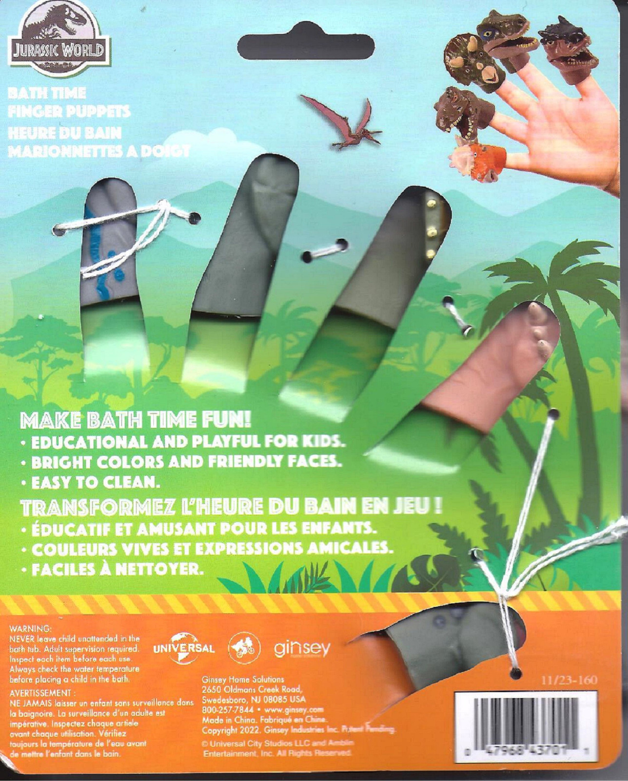 New Jurassic World Dinosaur Finger Puppets - Soft PVC -Bath Time Fun 6Ship