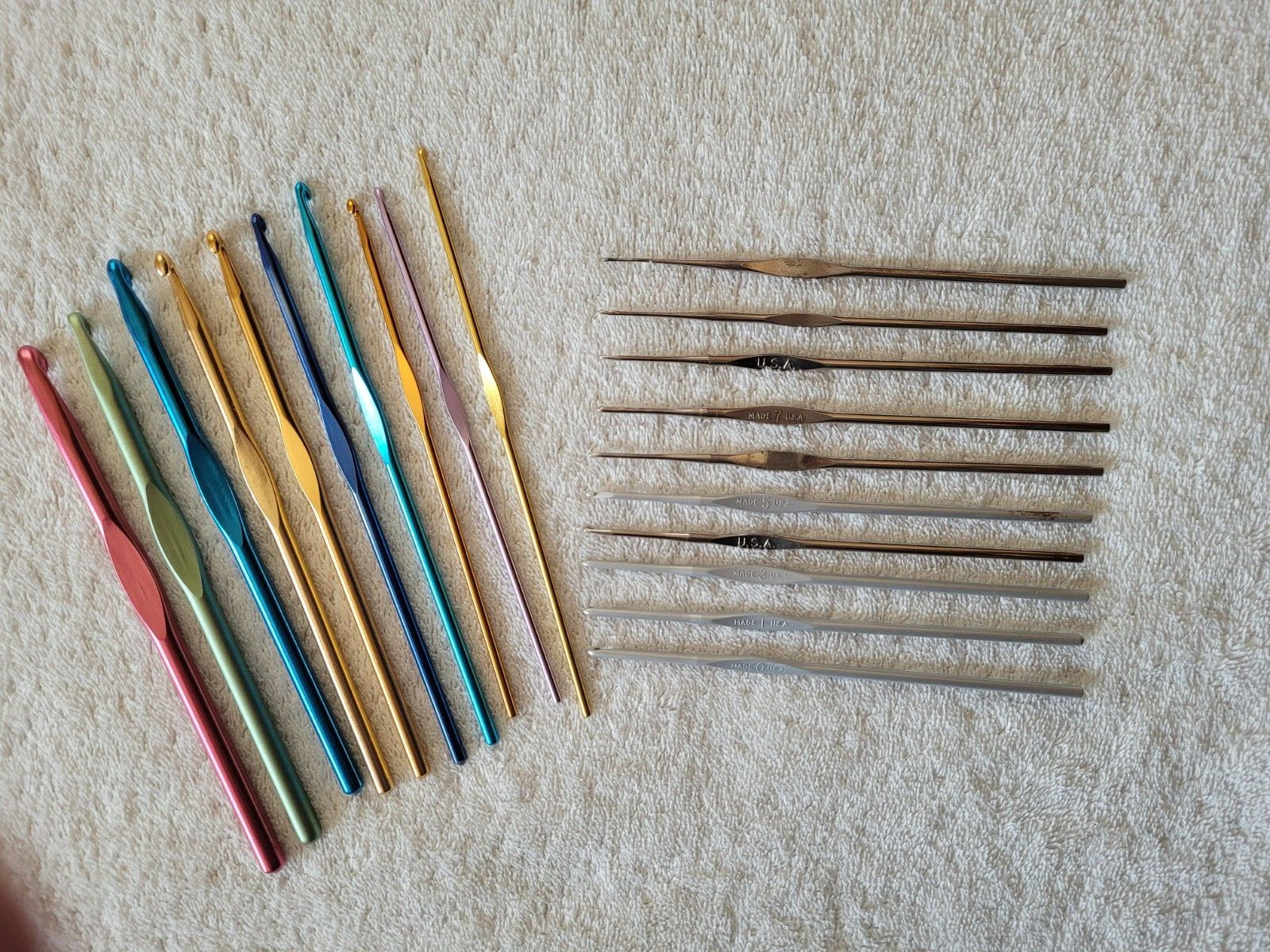 Preowned Set of 20 Crochet Hooks K,J,I,H,G,F,E,D,C,B,0,1,3,4,5,6,7,8,10, 13
