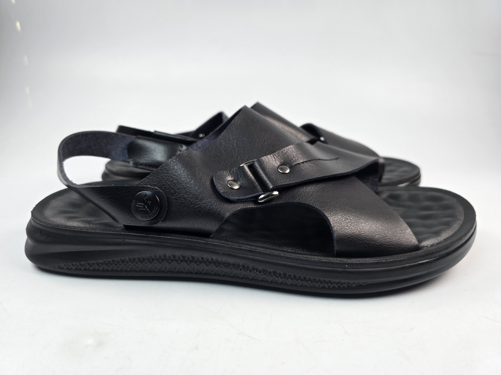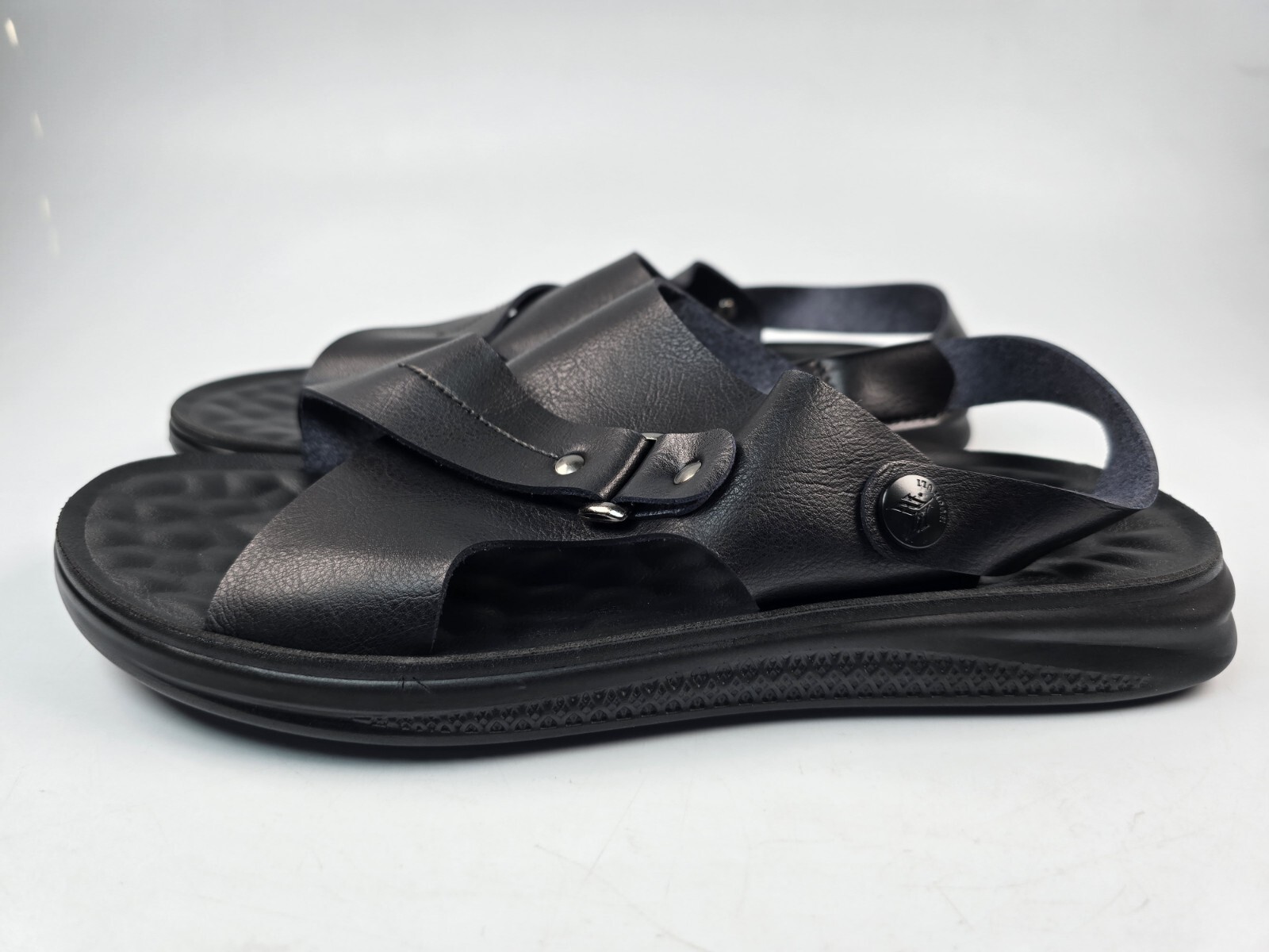 HUOHULI Mens Sandals Leather Comfort Outdoor Slide Sandals Size 9 - Black