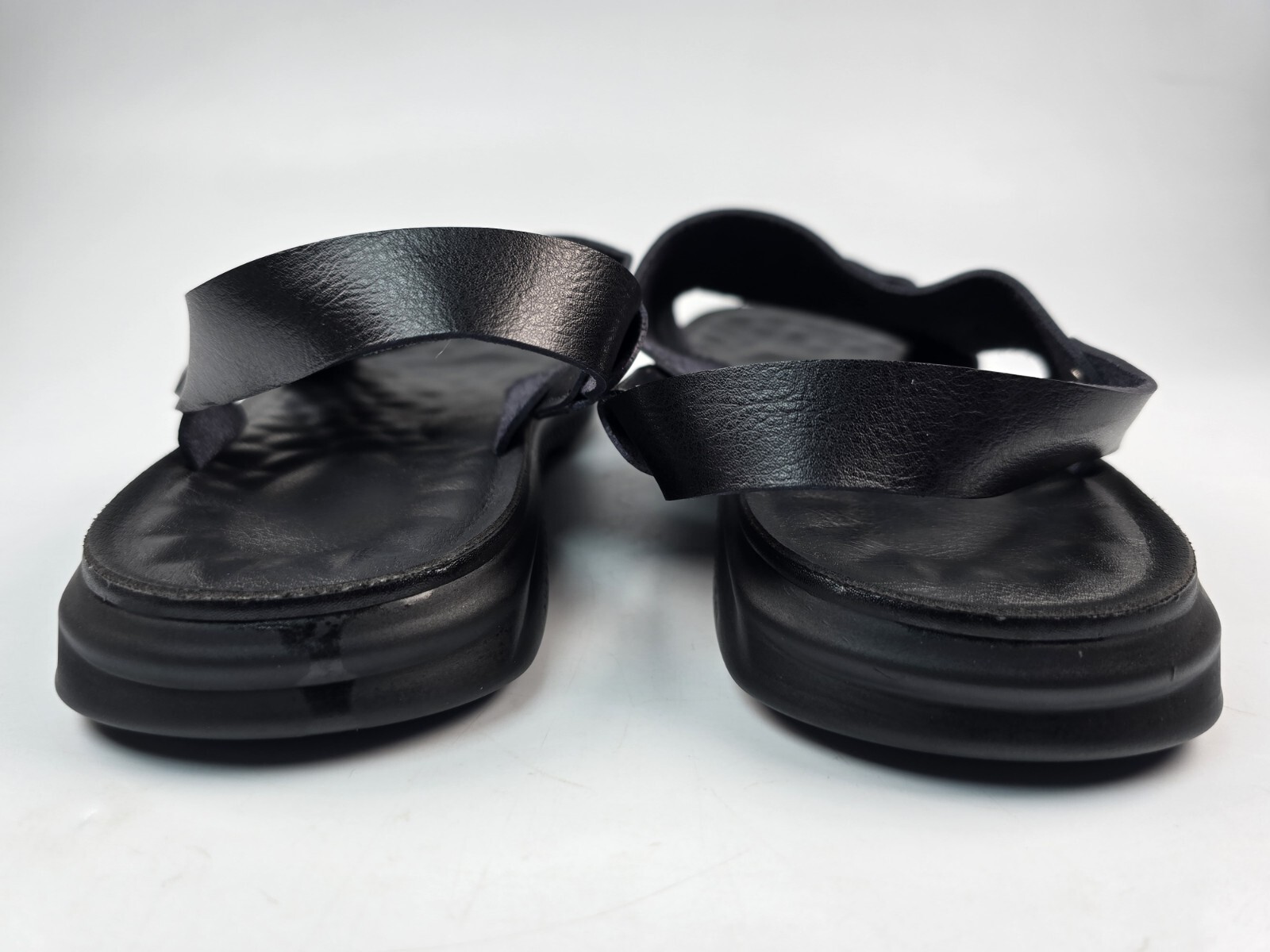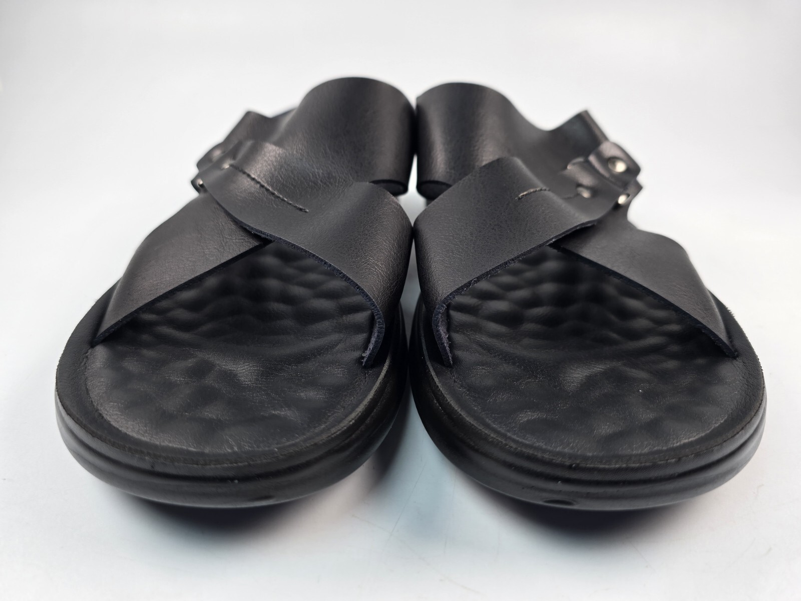 как выглядит HUOHULI Mens Sandals Leather Comfort Outdoor Slide Sandals Size 9 - Black фото