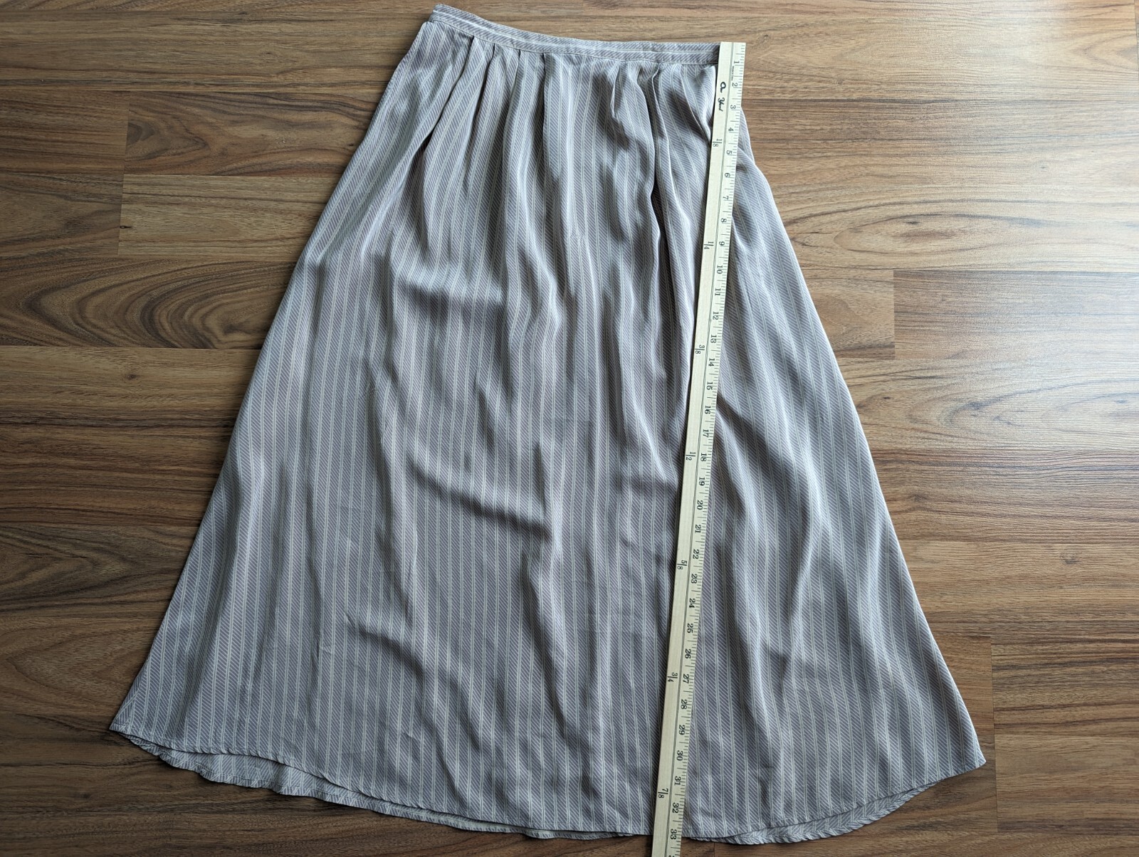 как выглядит Vintage 90s 100 Silk Midi skirt Mauve Beige Stripe, Coastal Cowgirl A7 фото