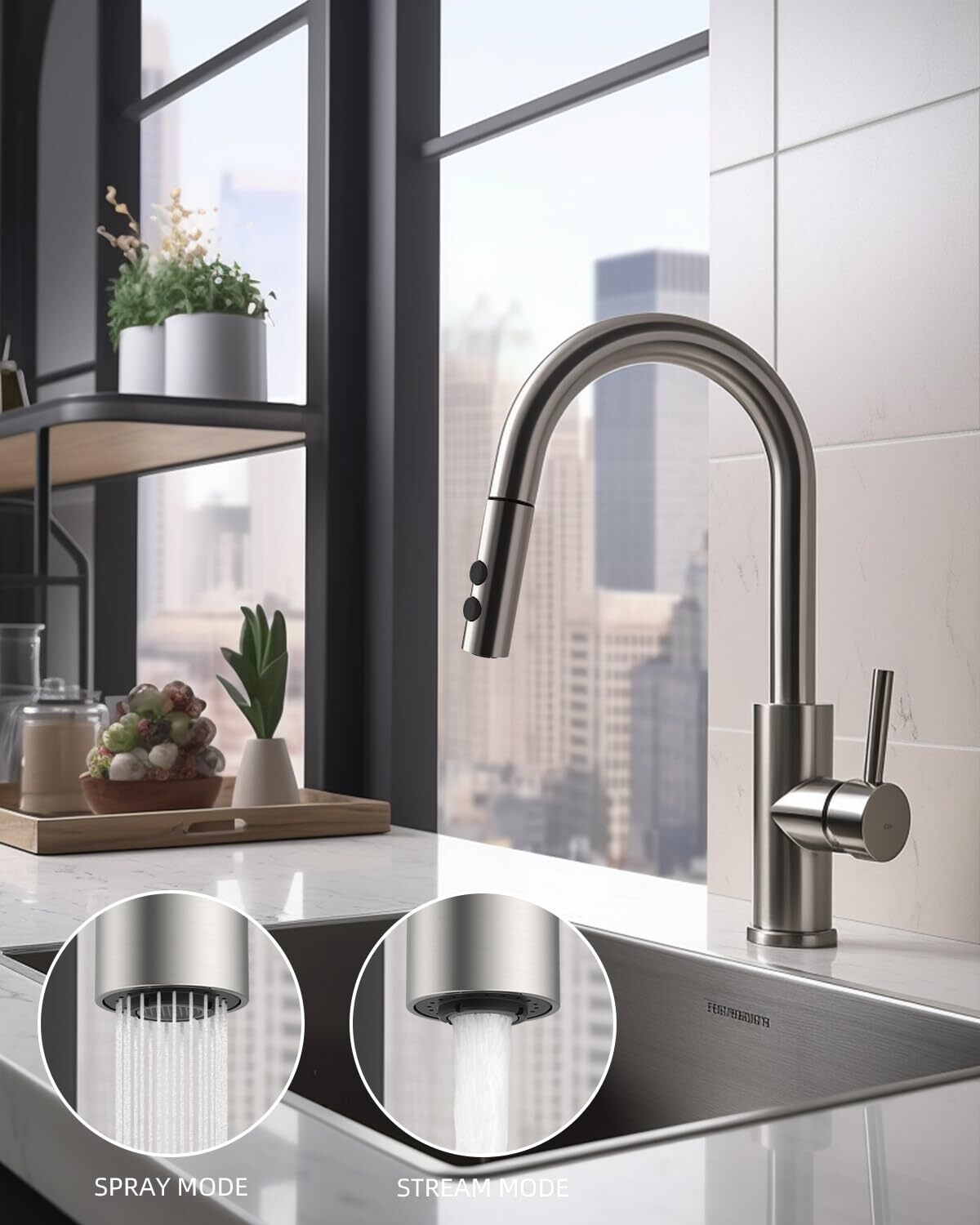 Особенности: Pull-Out, Quick Cleaning, Dual Water Flow Modes, Easy Installation