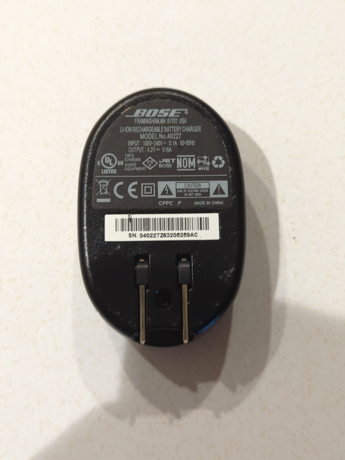 BOSE 40227 Battery Charger For QC3 QuietComfort 3 Headphones Retractable plug