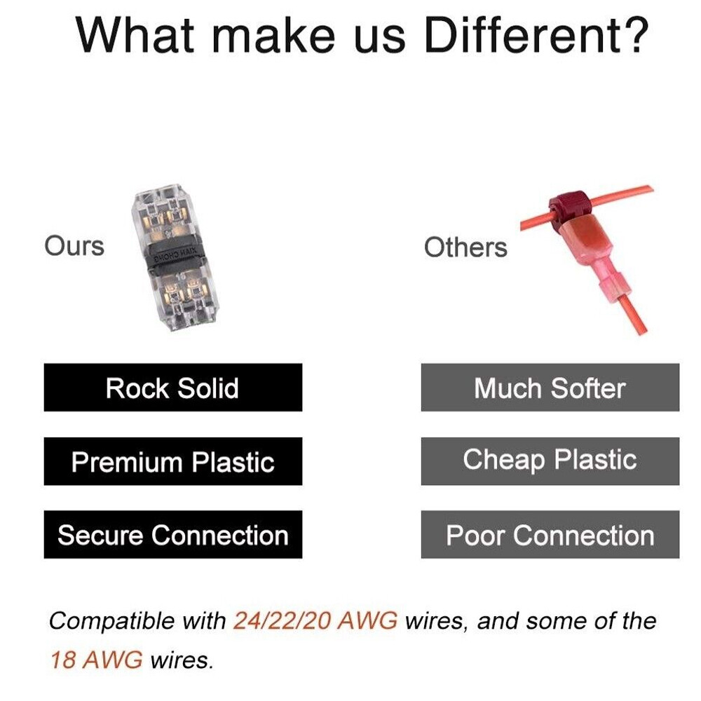24Pack Quick Solderless Wire Splice Connector, 2 Way Automotive Fits 18-22 AWG
