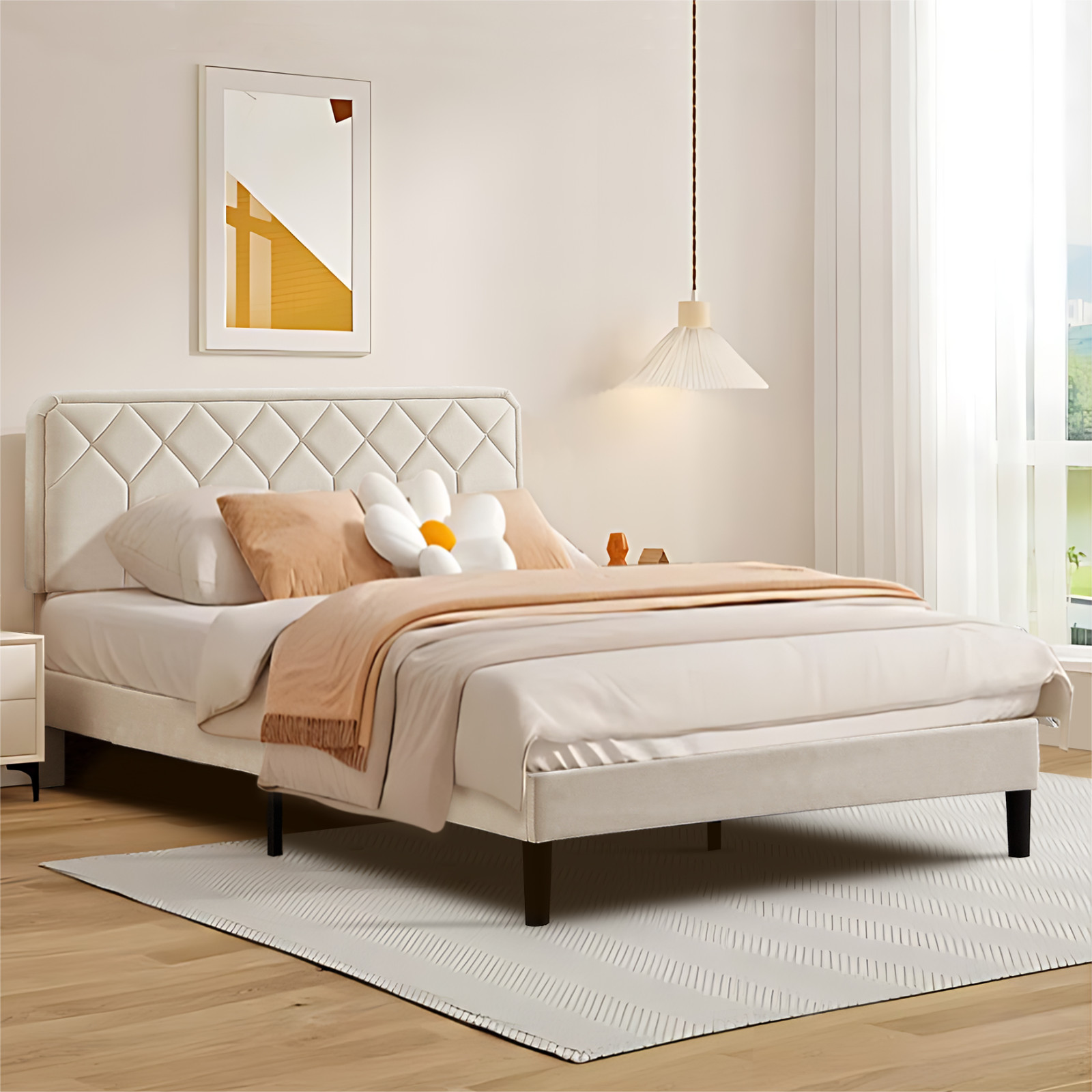 Upholstered Bed Frame Twin/Full/Queen Size with Fabric Headboard Mattress Base
