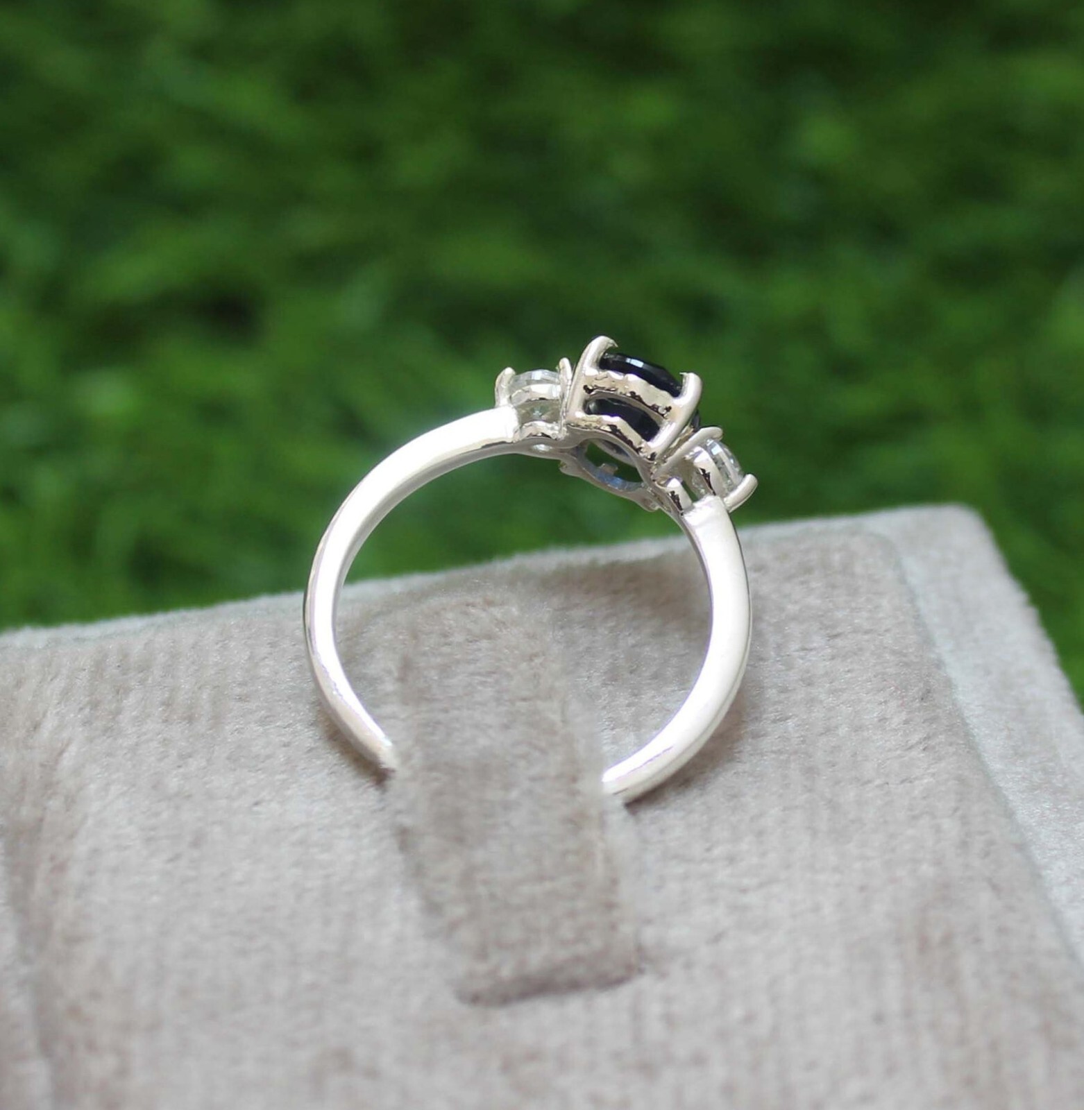 как выглядит Lab Created Oval Blue Sapphire Ring Sterling Silver Gemstone Engagement Promise фото