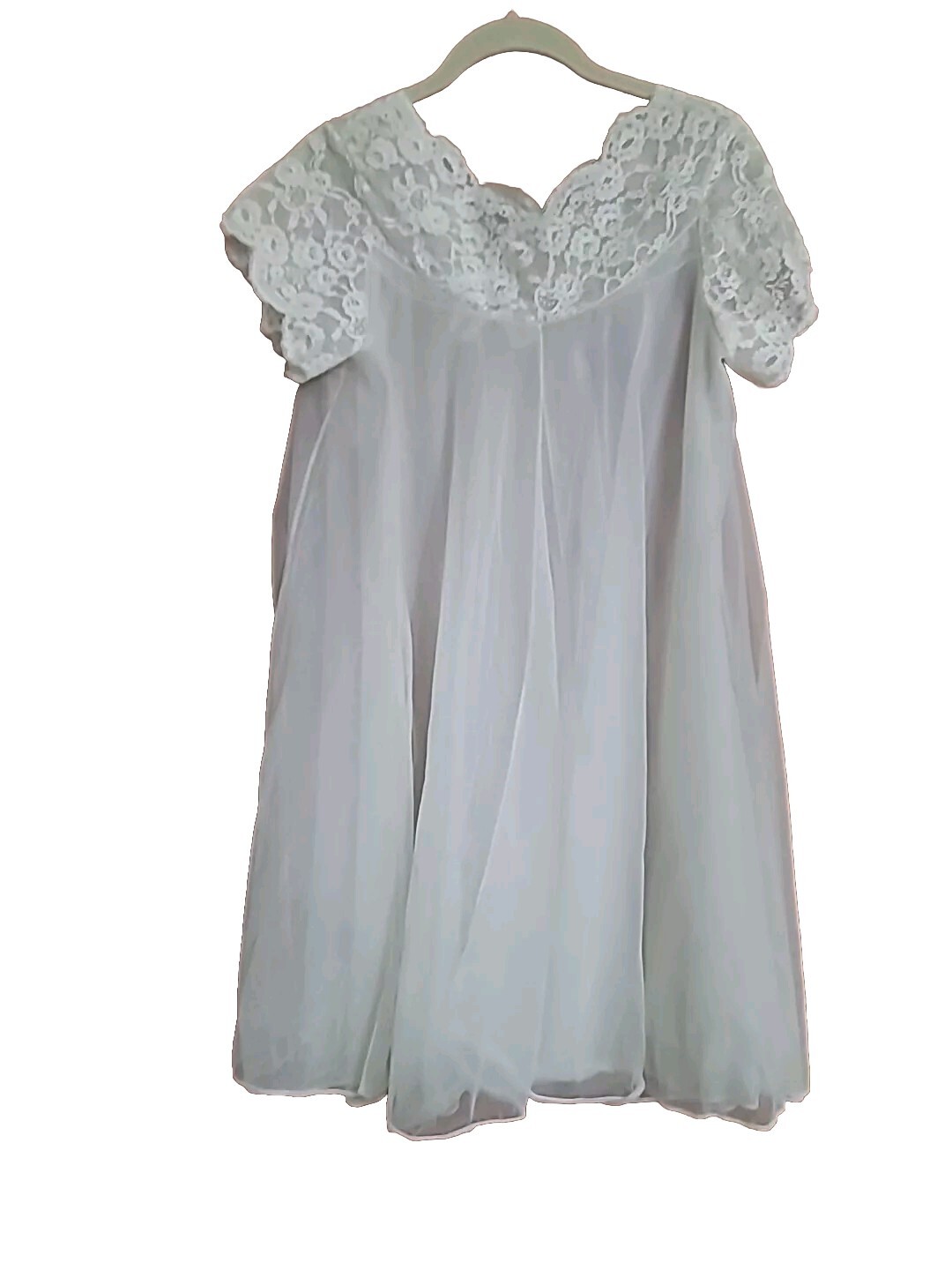 Vtg 60s Van Raalte Lace Double Layer Beige Chiffon Nylon Robe Lingerie Petite