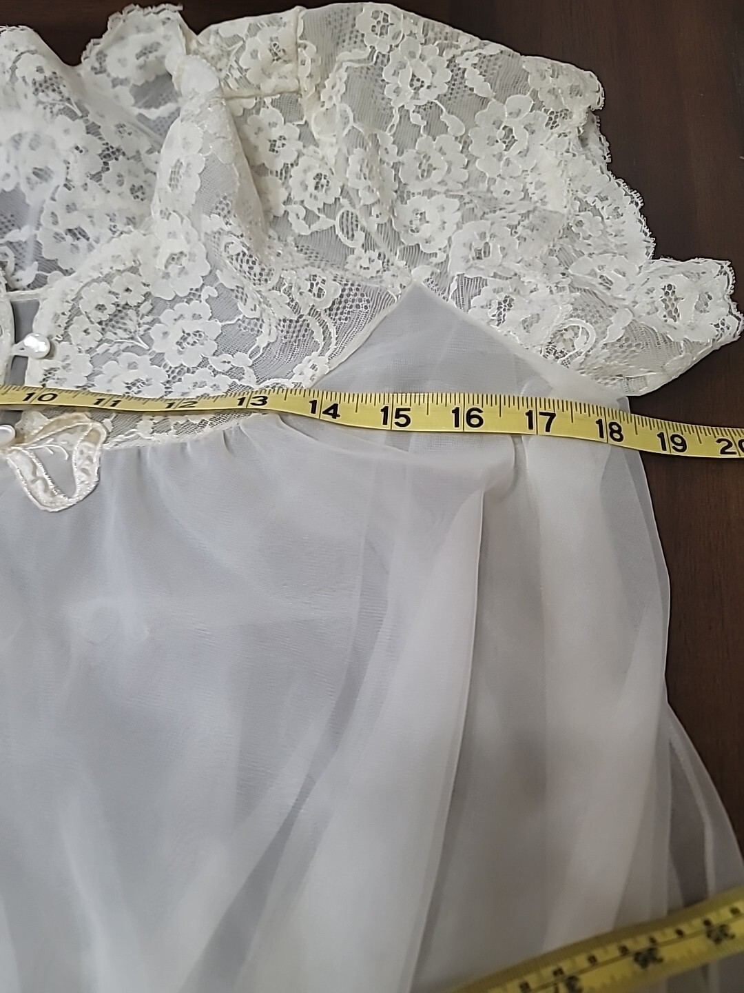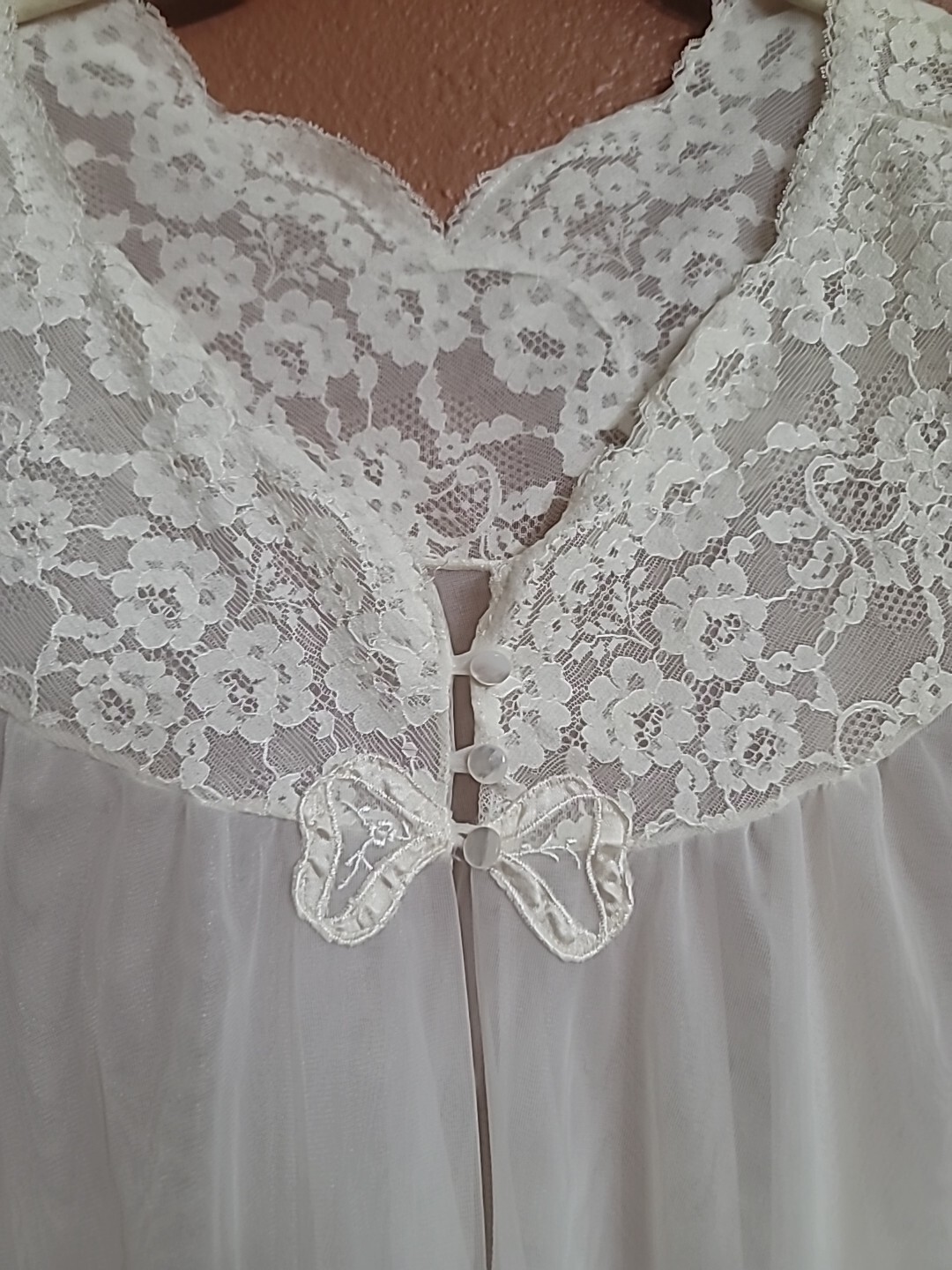 как выглядит Vtg 60s Van Raalte Lace Double Layer Beige Chiffon Nylon Robe Lingerie Petite фото