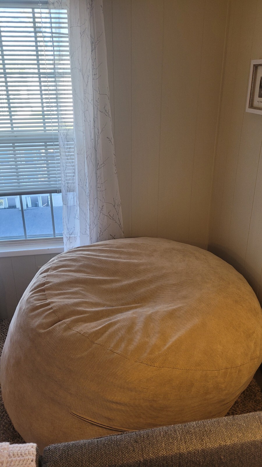 Tan Cordaroy Bean Bag Chair: Barely Used - Queen Sized Mattress Inside