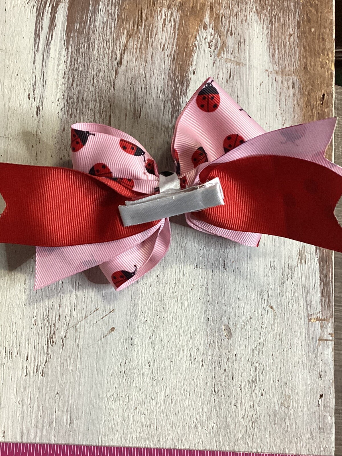 Girls Hair Bows Ladybug Print NEW