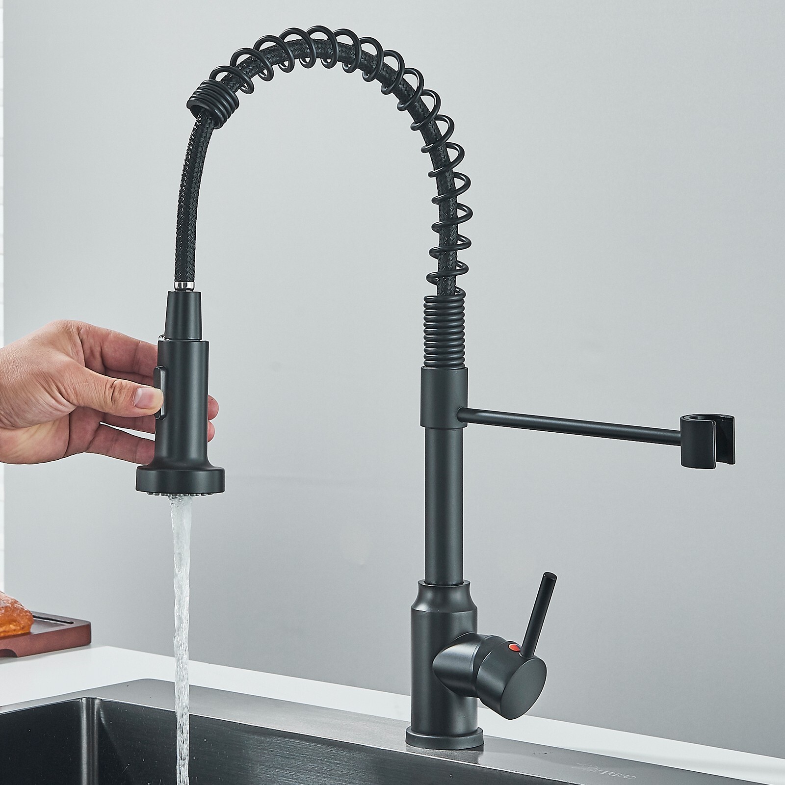 как выглядит Black Kitchen Sink Faucet with Pull Down Sprayer One Hole Single Handle Tap фото