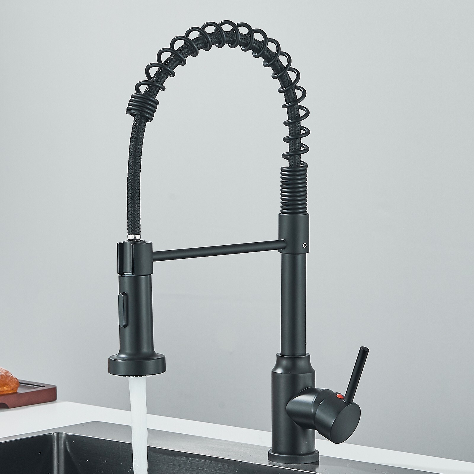 Black Kitchen Sink Faucet with Pull Down Sprayer One Hole Single Handle Tap