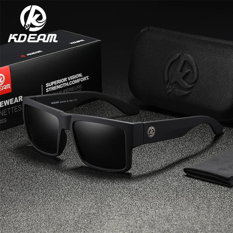 KDEAM Polarized Black Frame Sports Sunglasses Men Outdoor Driving Square Goggles