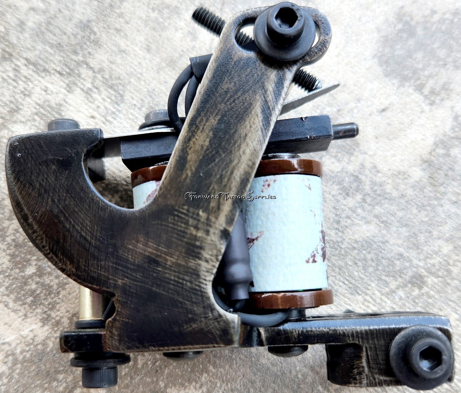 Blackened Distressed Old School PR Shader Tattoo Machine Nautical Star Coils USA