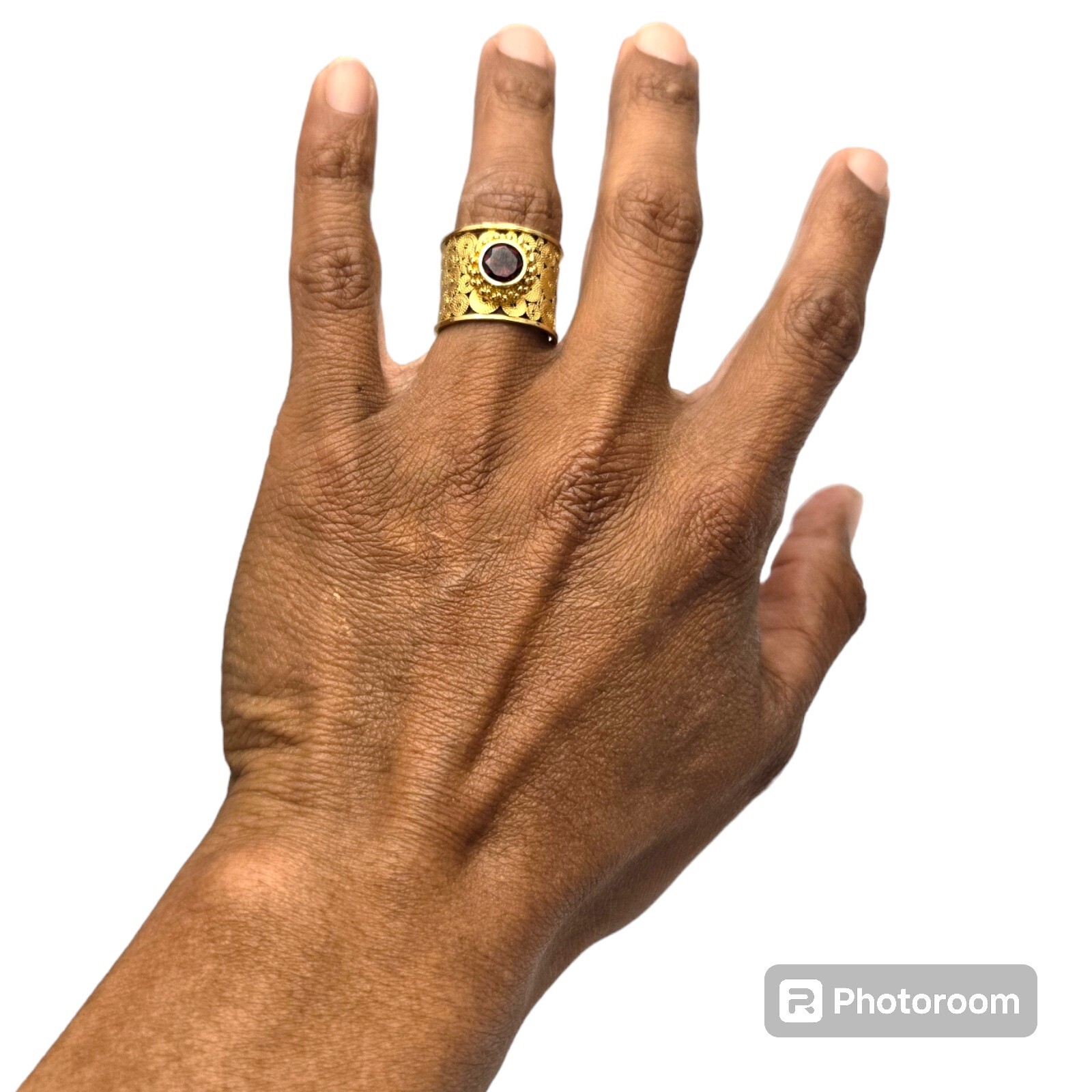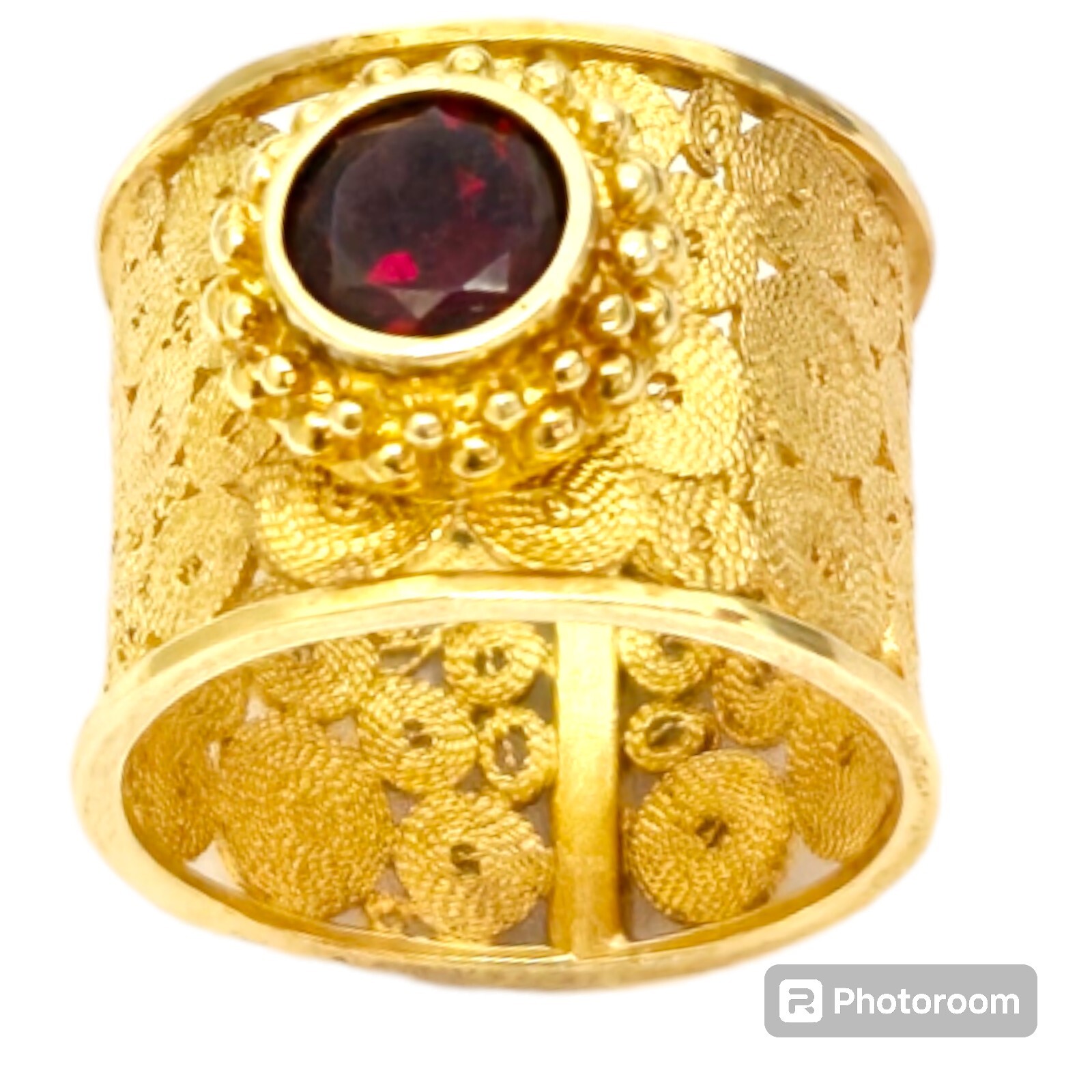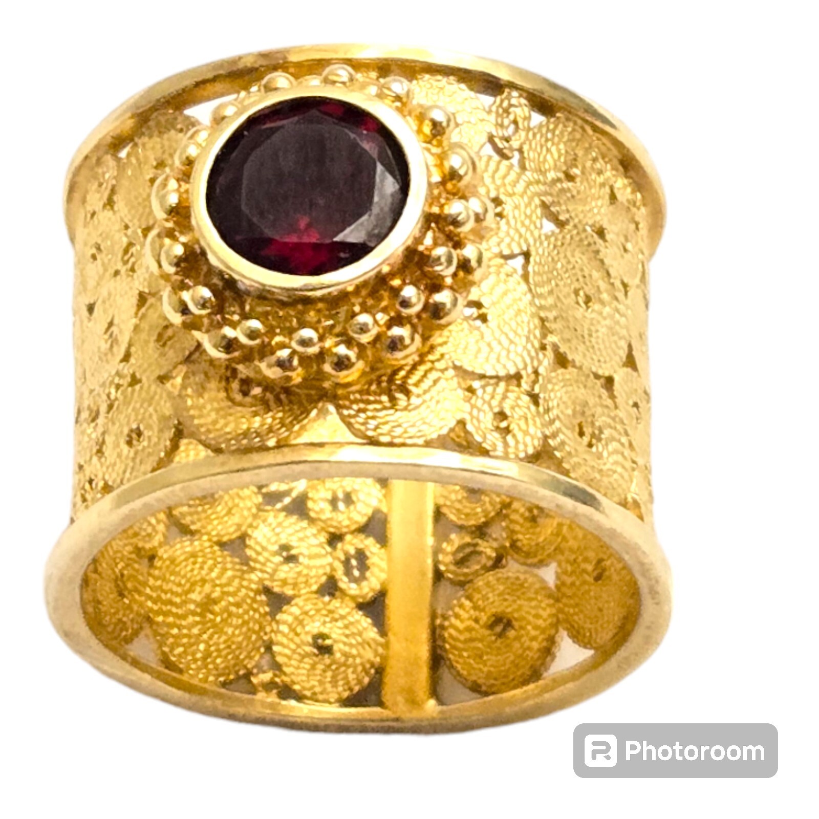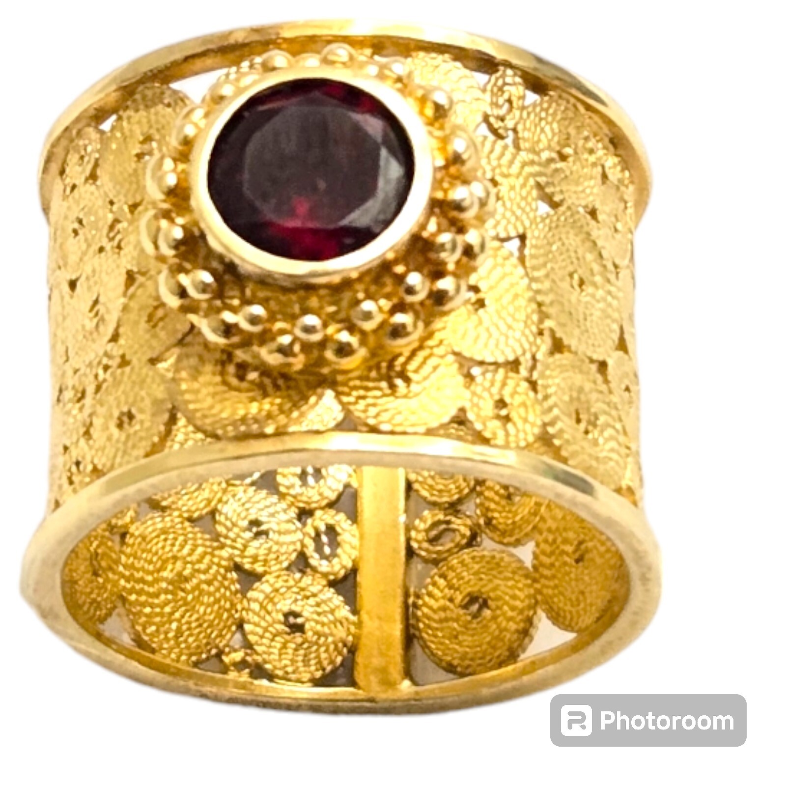 как выглядит Dalia ID Vtg 925 Sterling Silver Gold Vermeil Filigree Design Garnet Ring Sz8.75 фото