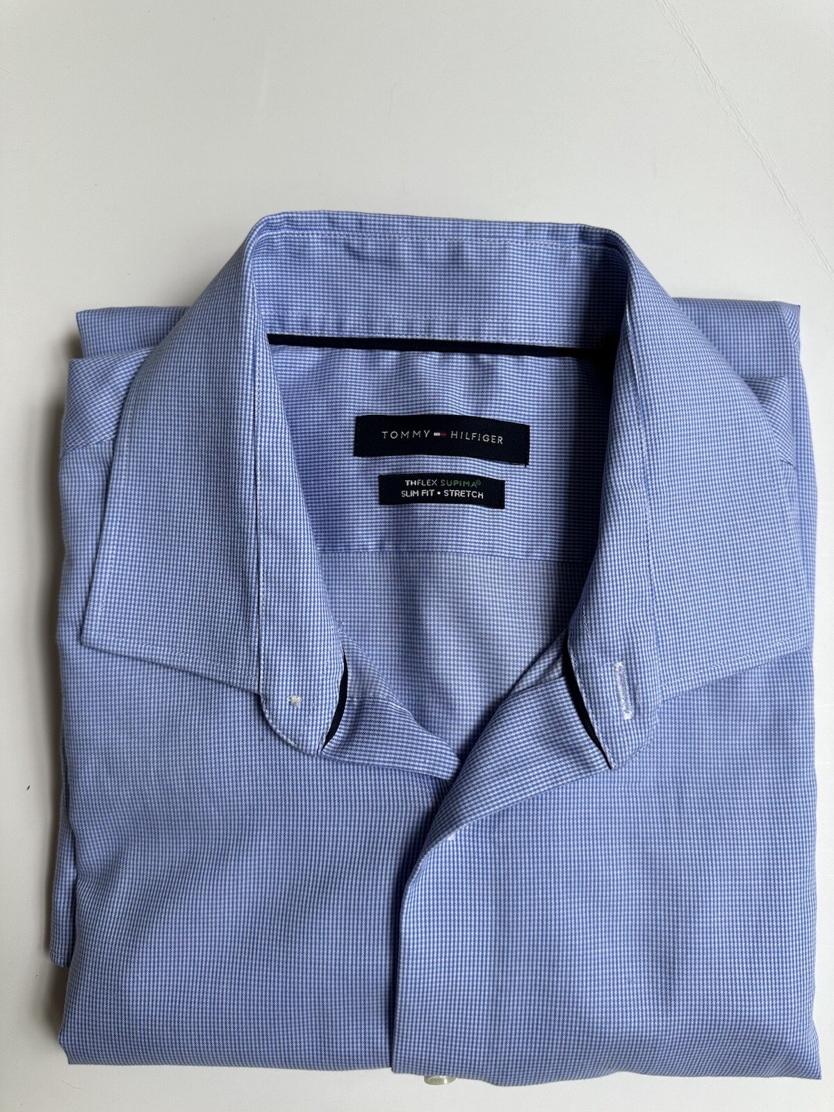 Tommy hilfiger Men's Slim Fit- stretch Check Dress Shirt Blue Size 32/33