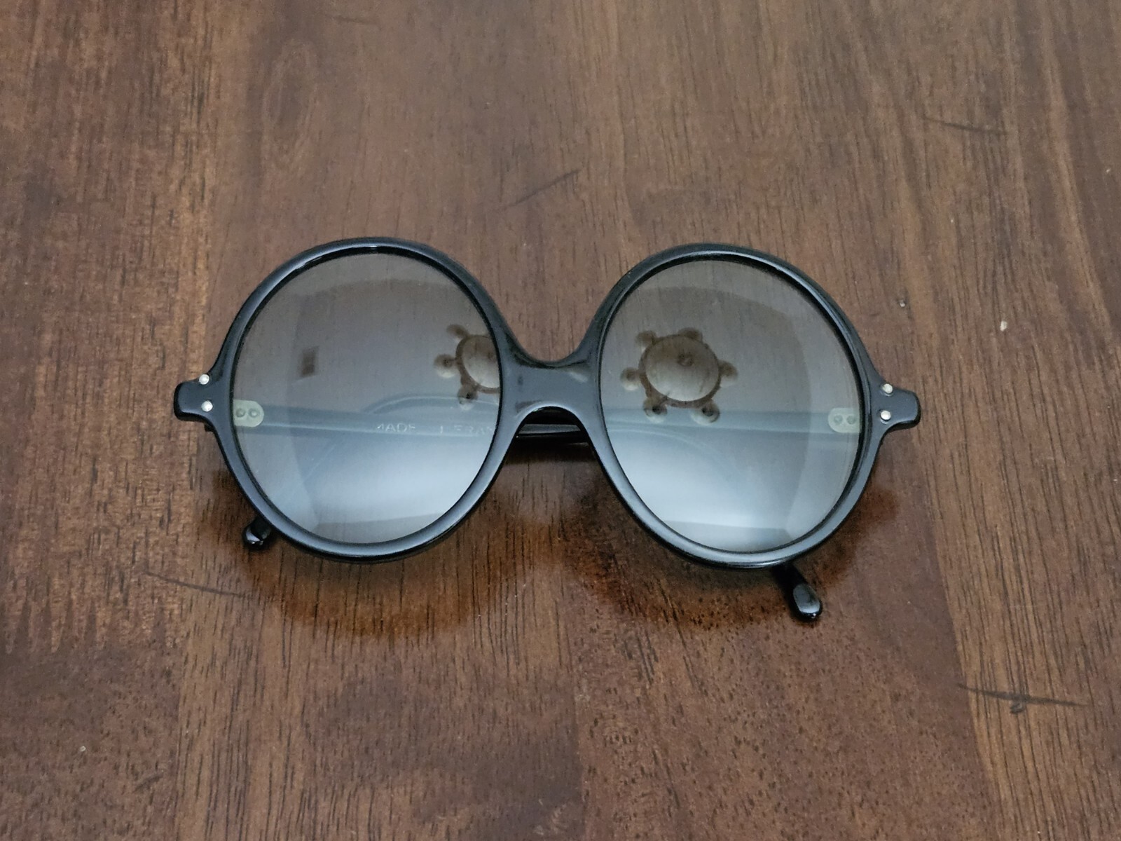 как выглядит Vintage Horned Rim Black Oval Sunglasses Made in Framce Rare фото