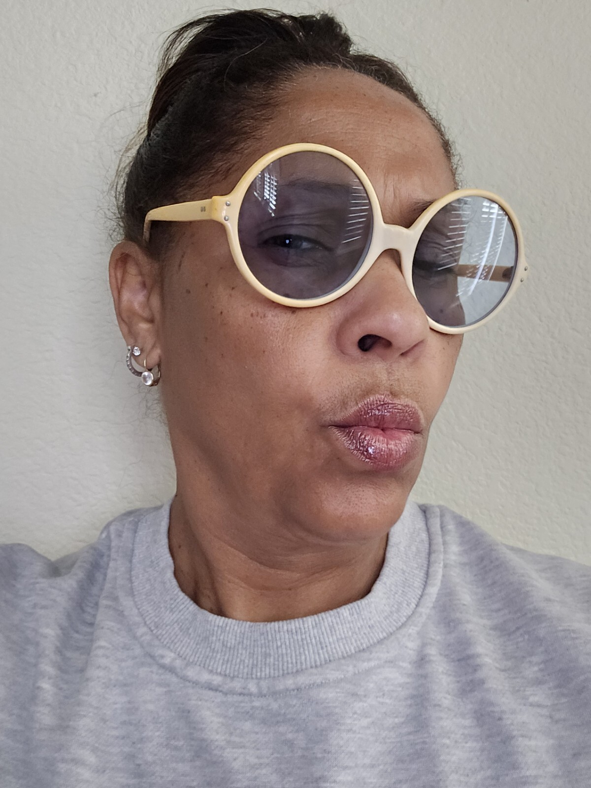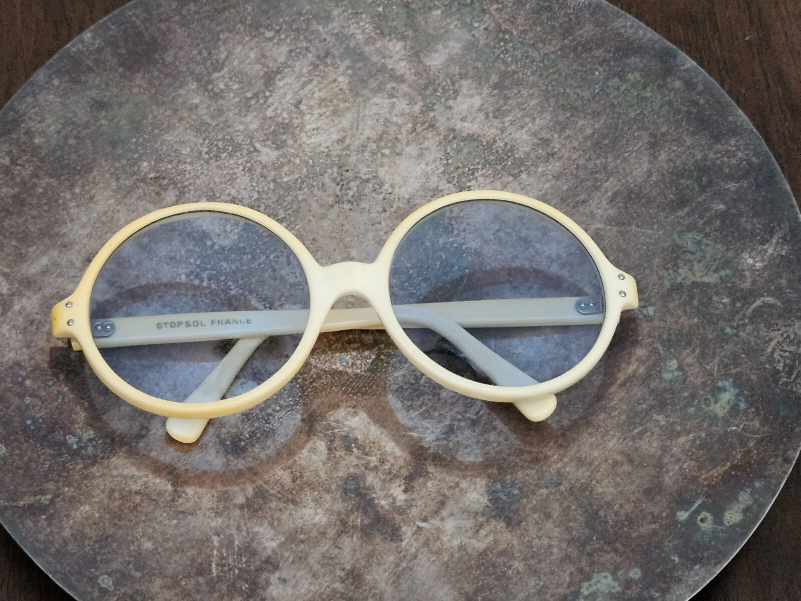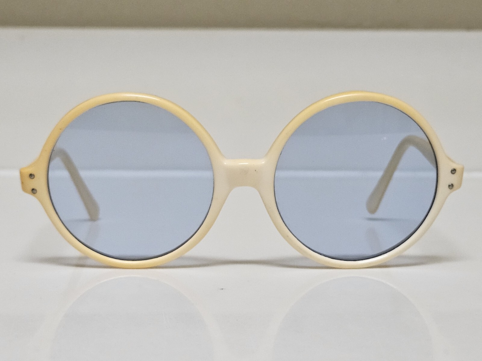 как выглядит Vintage Round Sunglasses Ambre Cream/Gold Frames Blue Gray Lenses Made In France фото