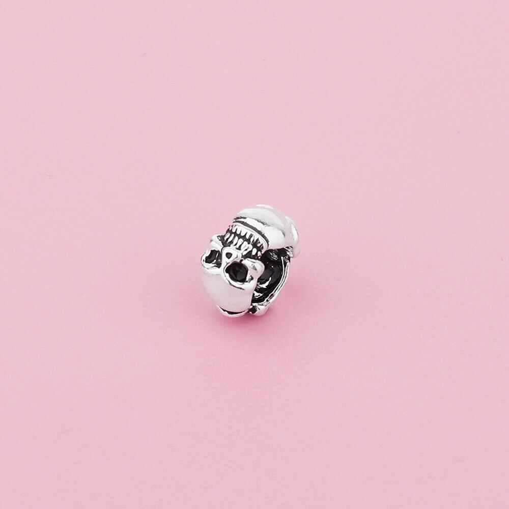 Sterling Silver Skull Rondelle Spacer European Bead Charm A5036