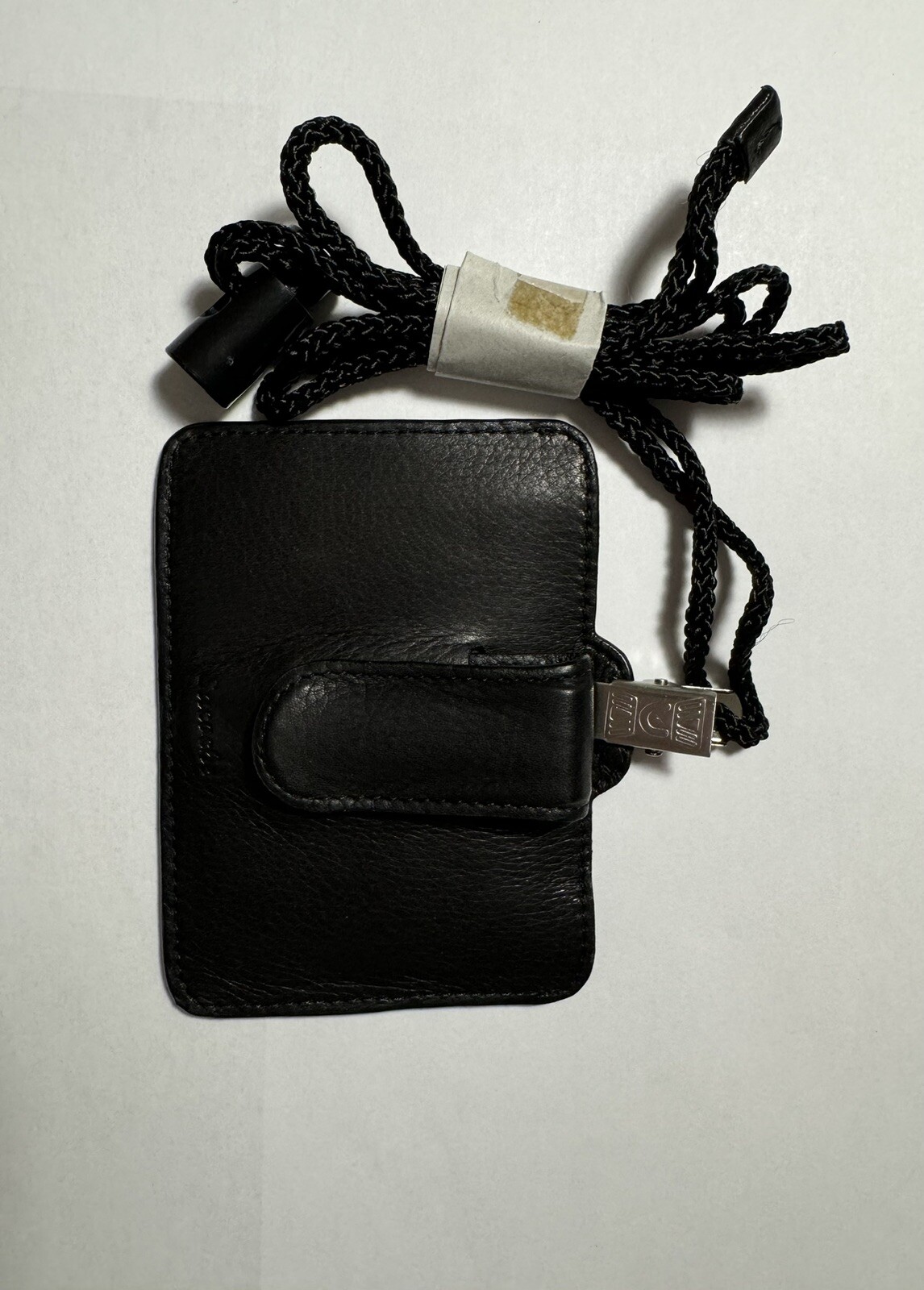 как выглядит Black Braided String Lanyard with ID badge holder, Good Quality Leather фото