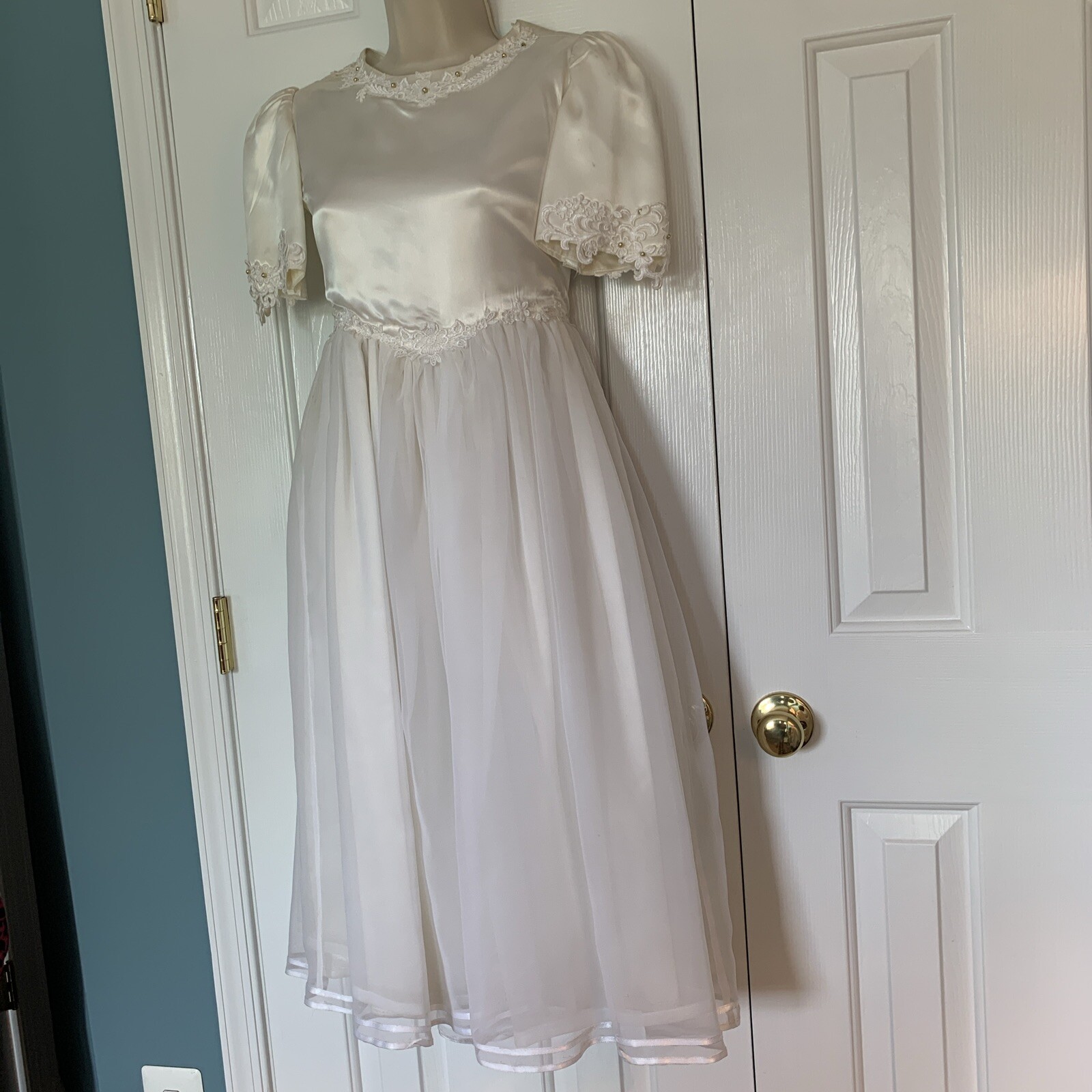 как выглядит VTG Jr Bridesmaid 1st Communion Occasion Girl s Dress Child Sz 10/12 Appliqu фото