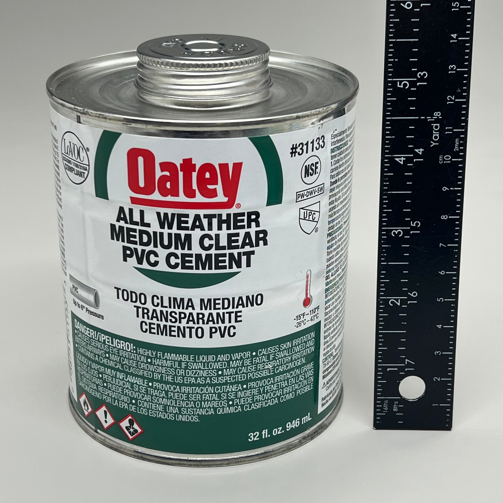 как выглядит OATEY All Weather Medium Clear PVC Cement Solvent Weld up to 6" Dia 32 fl oz 311 фото