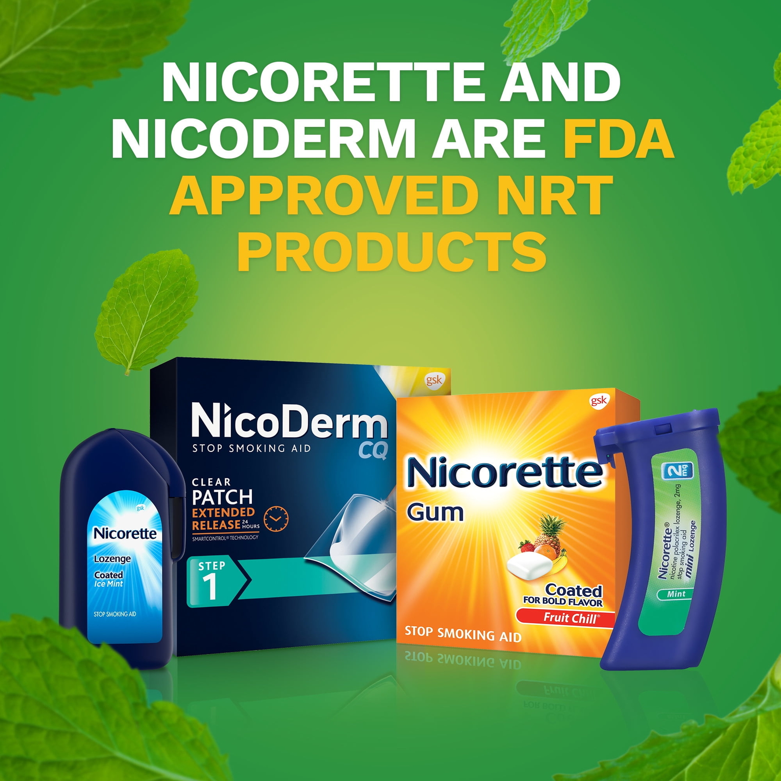 2Pack Nicorette Coated Nicotine Gum To Stop Smoking 2Mg Spearmint Burst Flavor