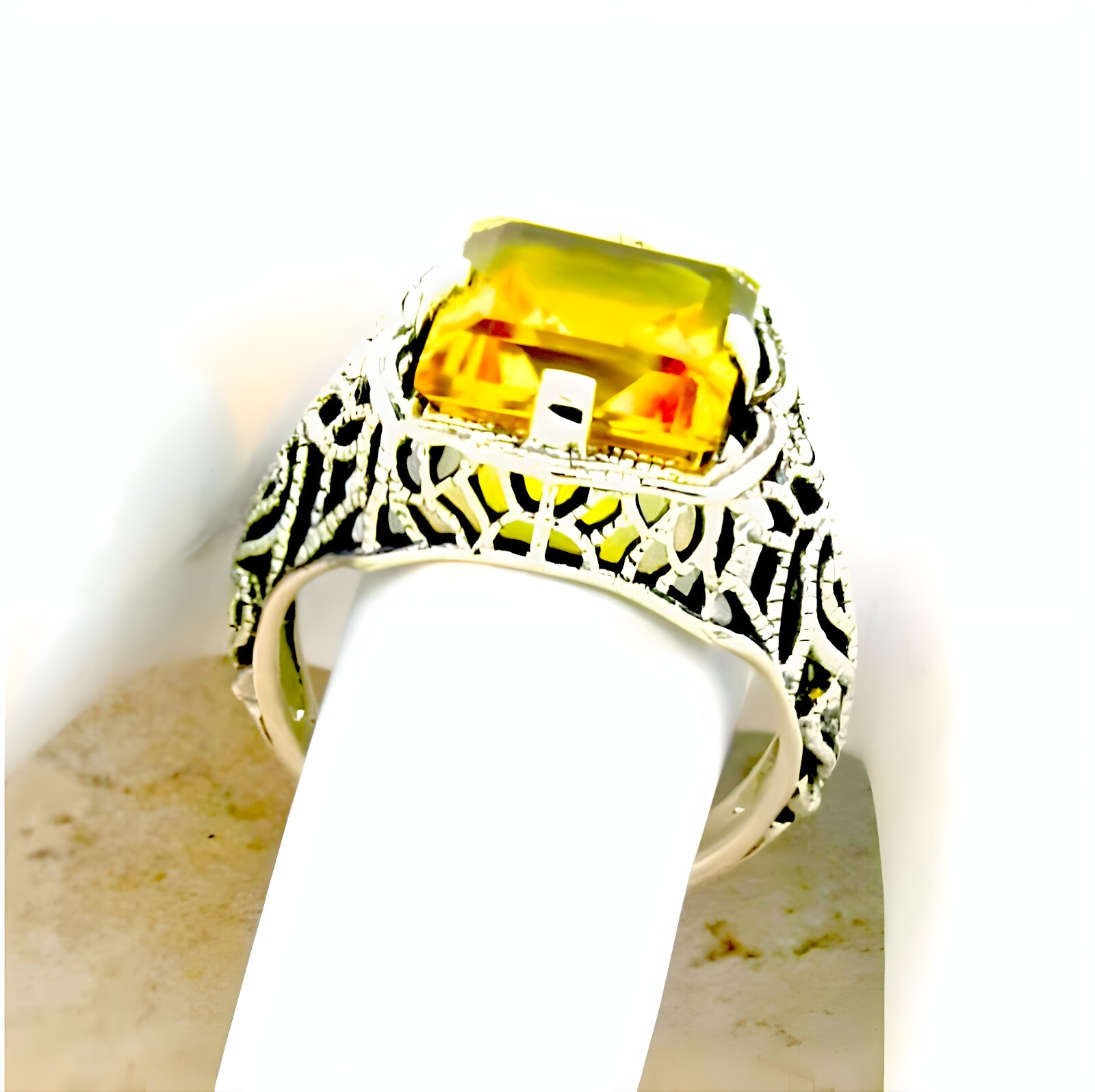 ANTIQUE STYLE 925 SOLID STERLING SILVER 3 CARAT LAB-CREATED CITRINE RING 345
