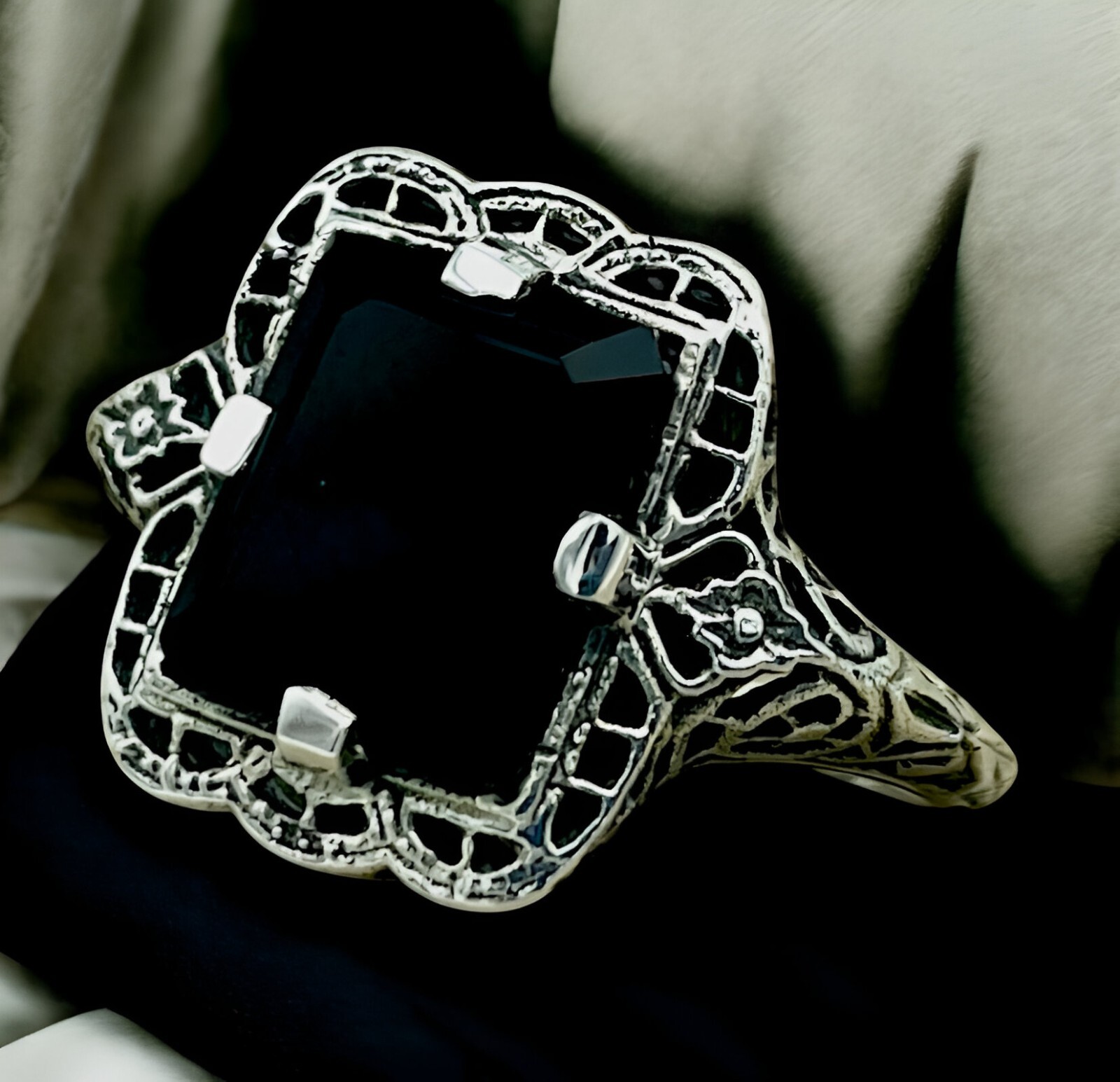 как выглядит BLACK AGATE FILIGREE VINTAGE DESIGN 925 SOLID STERLING SILVER RING  1233 фото