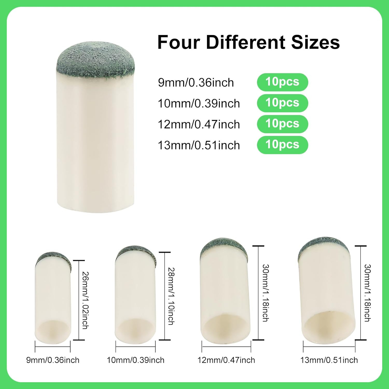40Pcs Slip on Pool Cue Tips, 4 Sizes Pool Stick Tips No Glue or Tool Required Bi