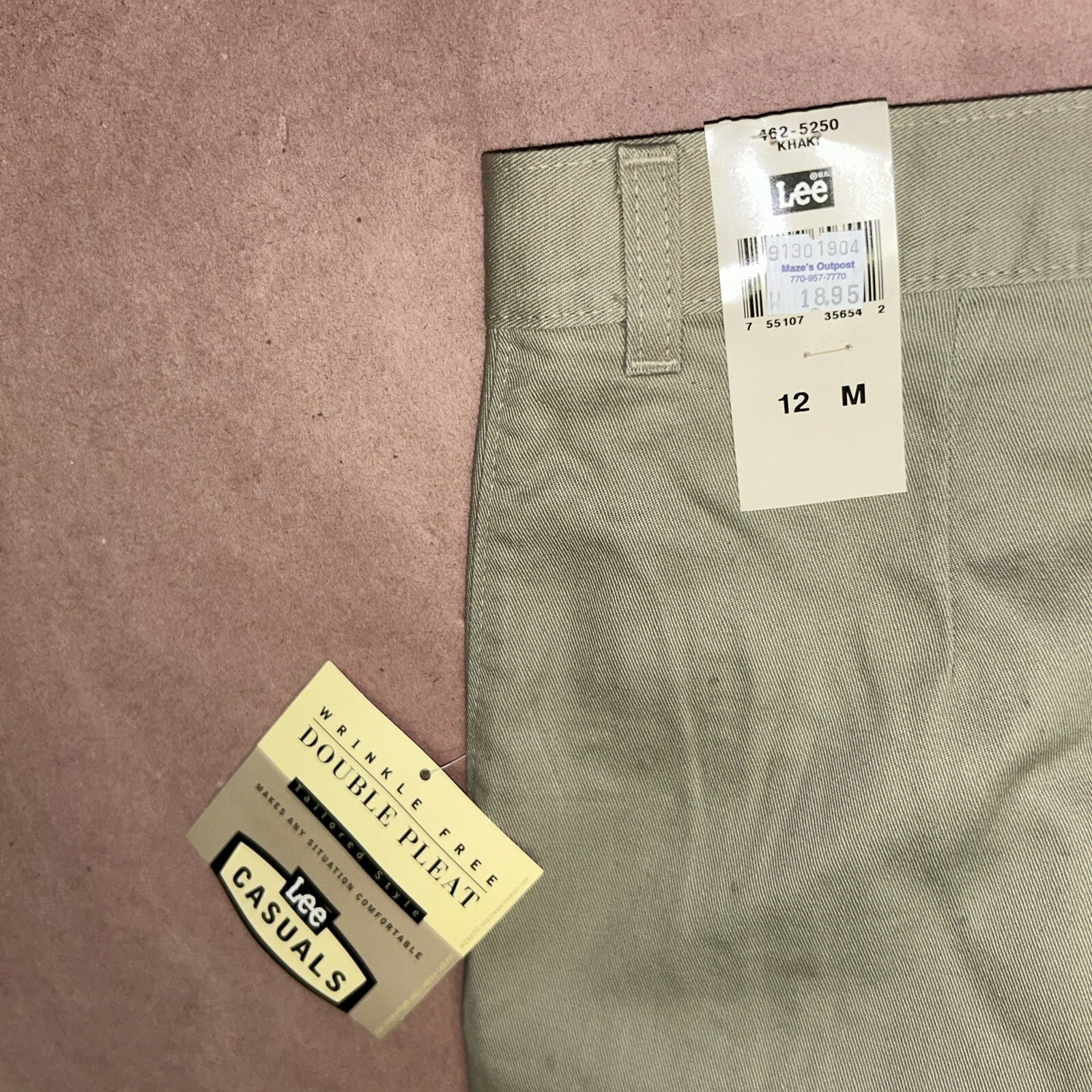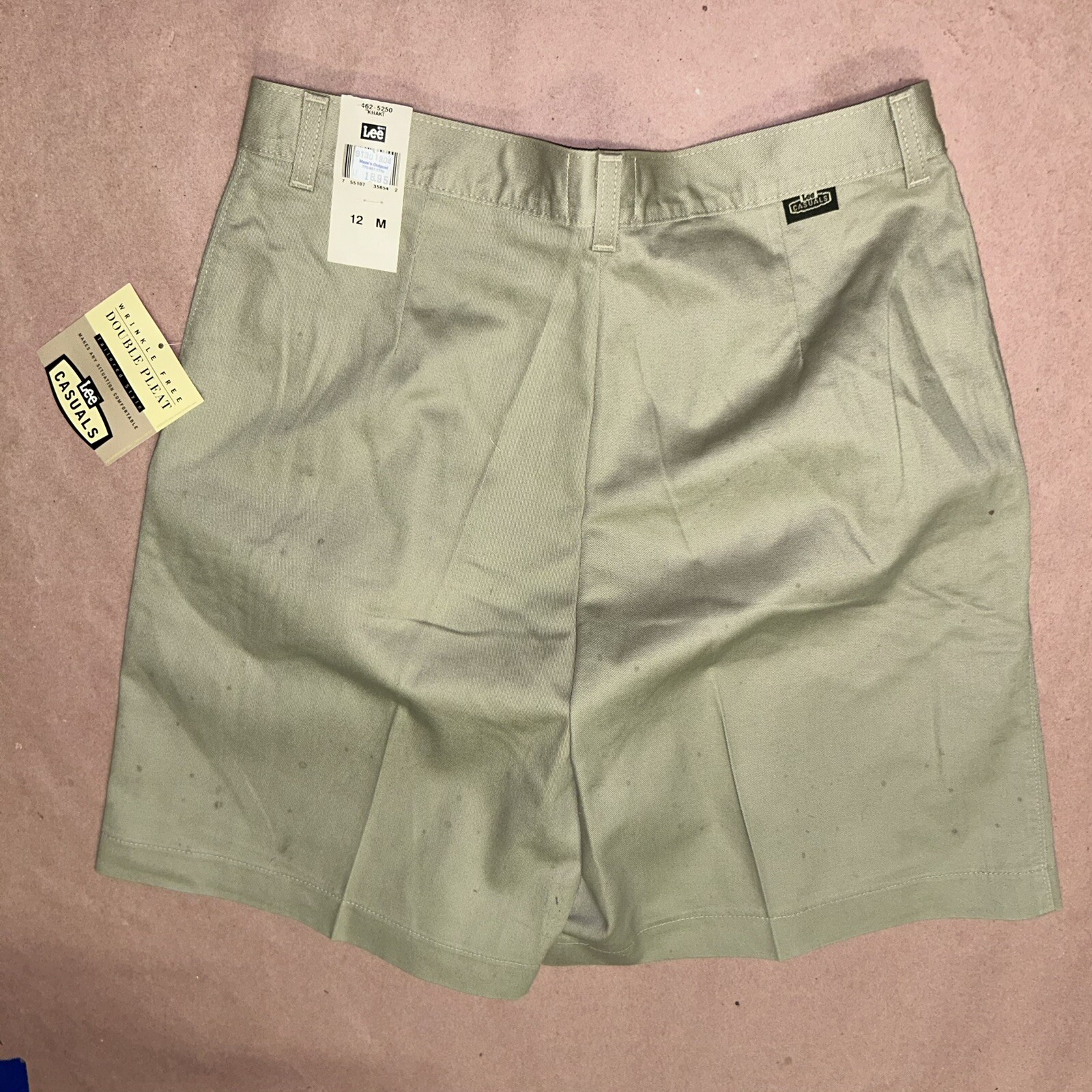 Vintage 1990 s Lee Casuals Double Pleat Khaki Shorts, Deadstock NWT, Size 12M