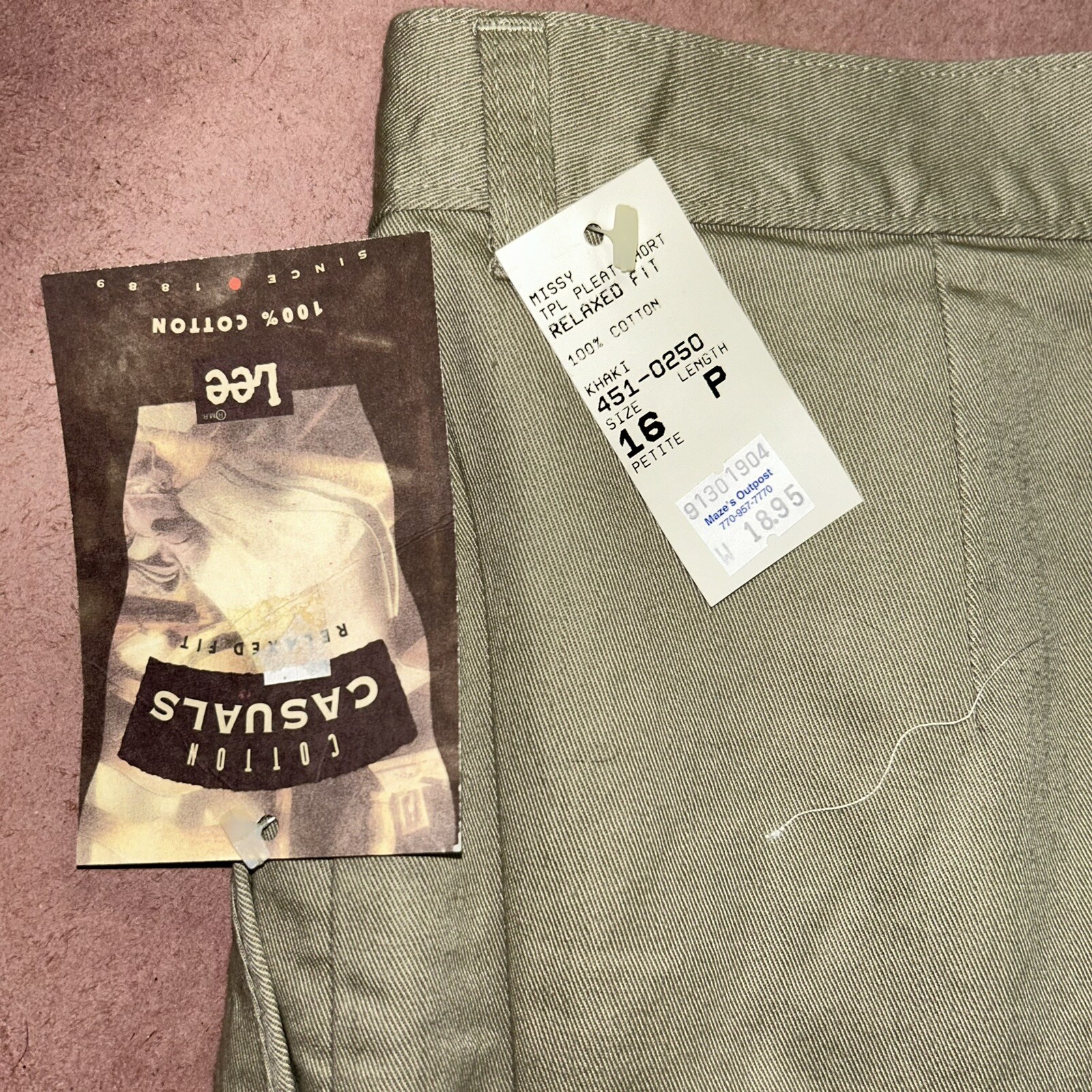 Vintage 1990 s Lee Cotton Casual Womens Shorts, Deadstock NWT, Size 16