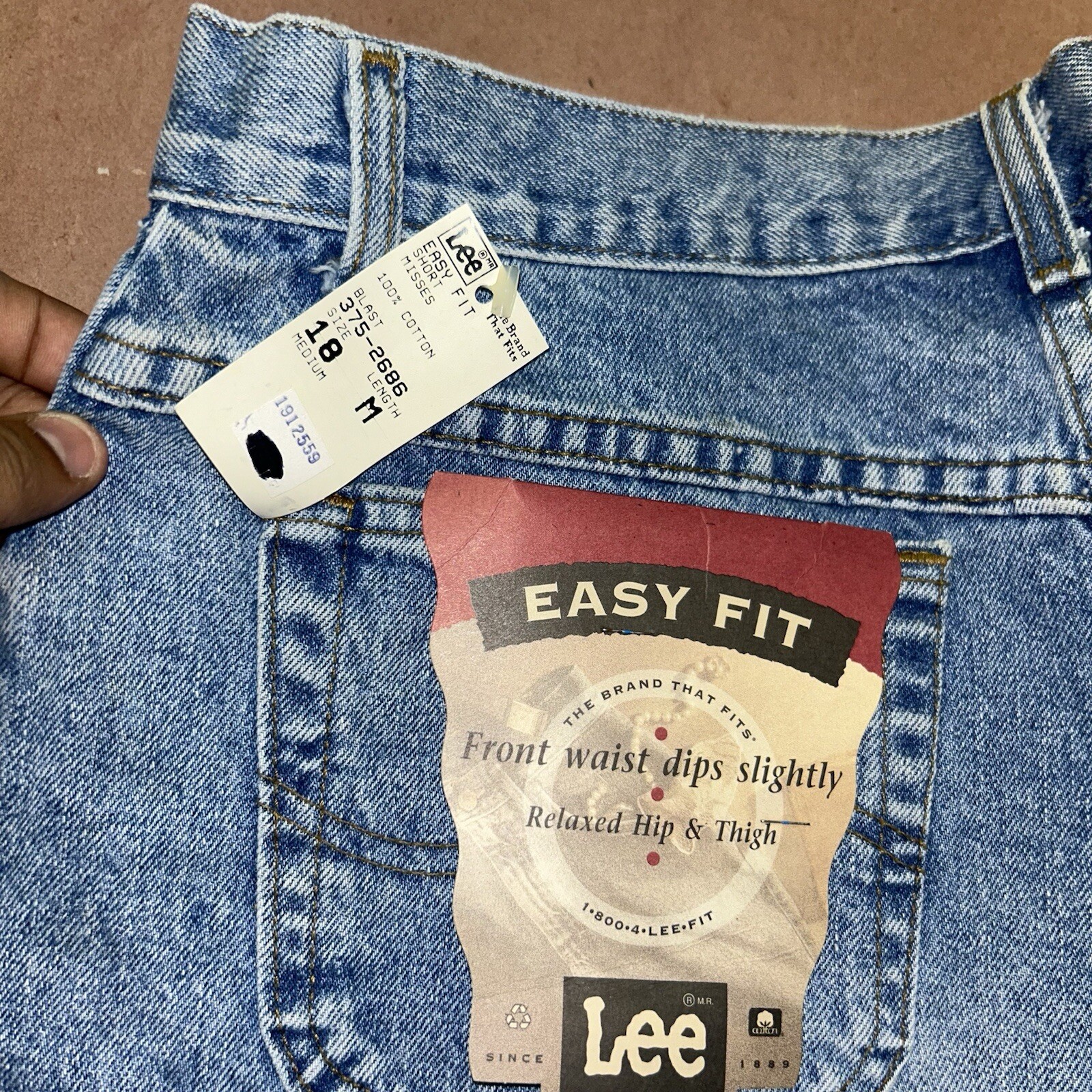 Vintage 1990 s Lee Womens Easy Fit Denim Shorts, Deadstock NWT, Size 18