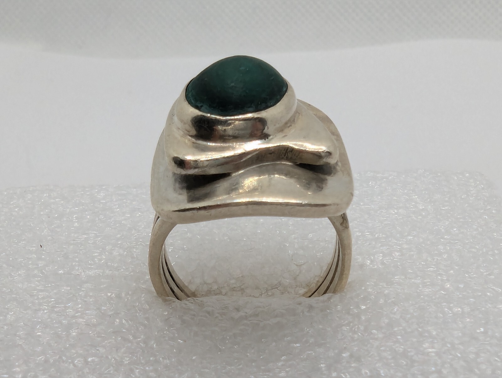 Vintage Sterling Silver 925 Modernist Malachite Ring Size 7.25