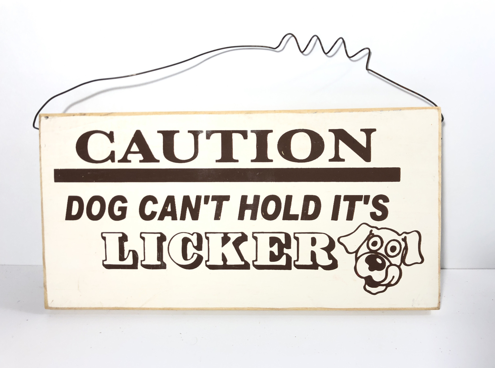 Funny Dog Sign 11 x6 Wood, Wall Hanging CAUTION Dog Can t Hold It s Licker