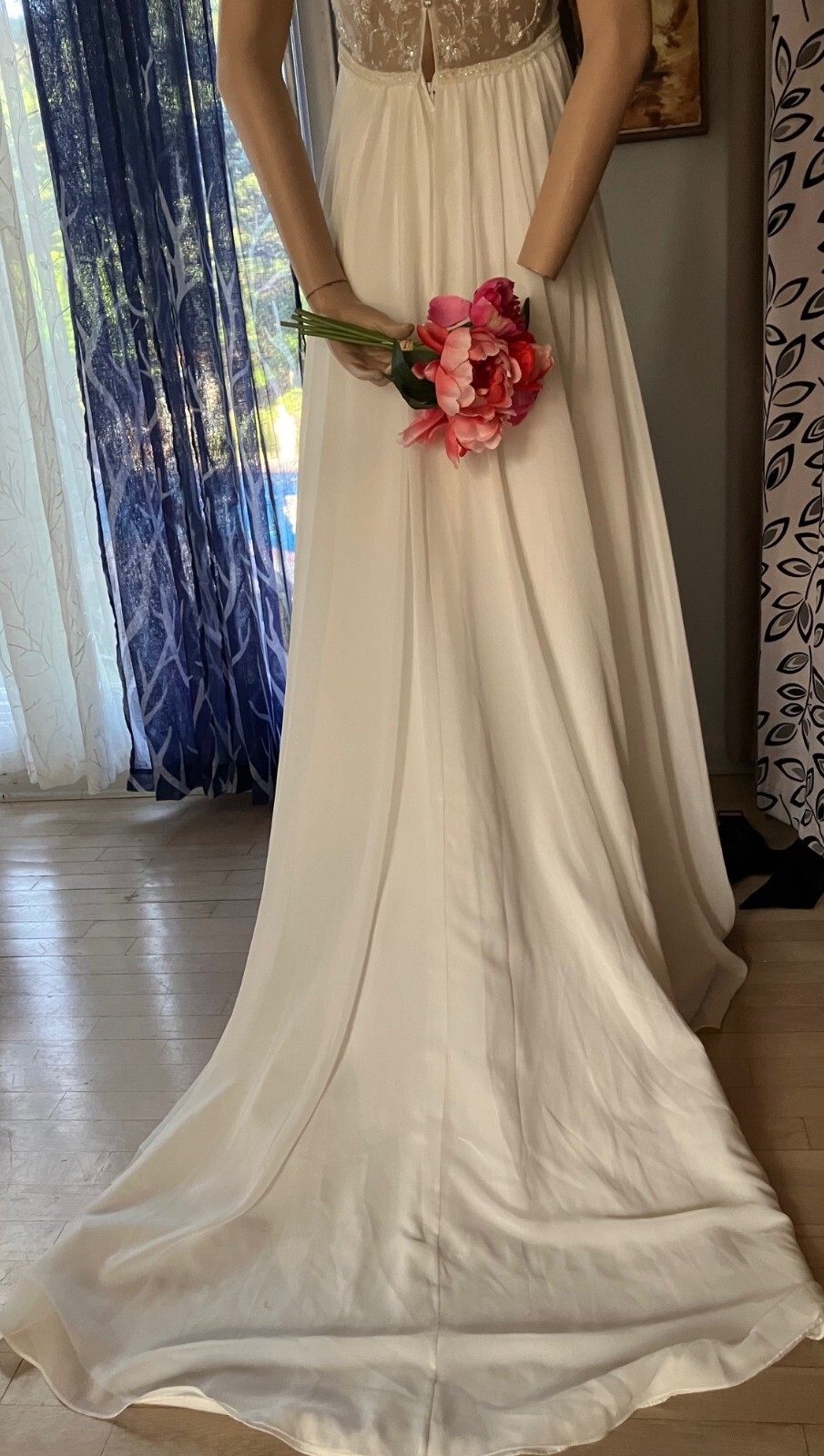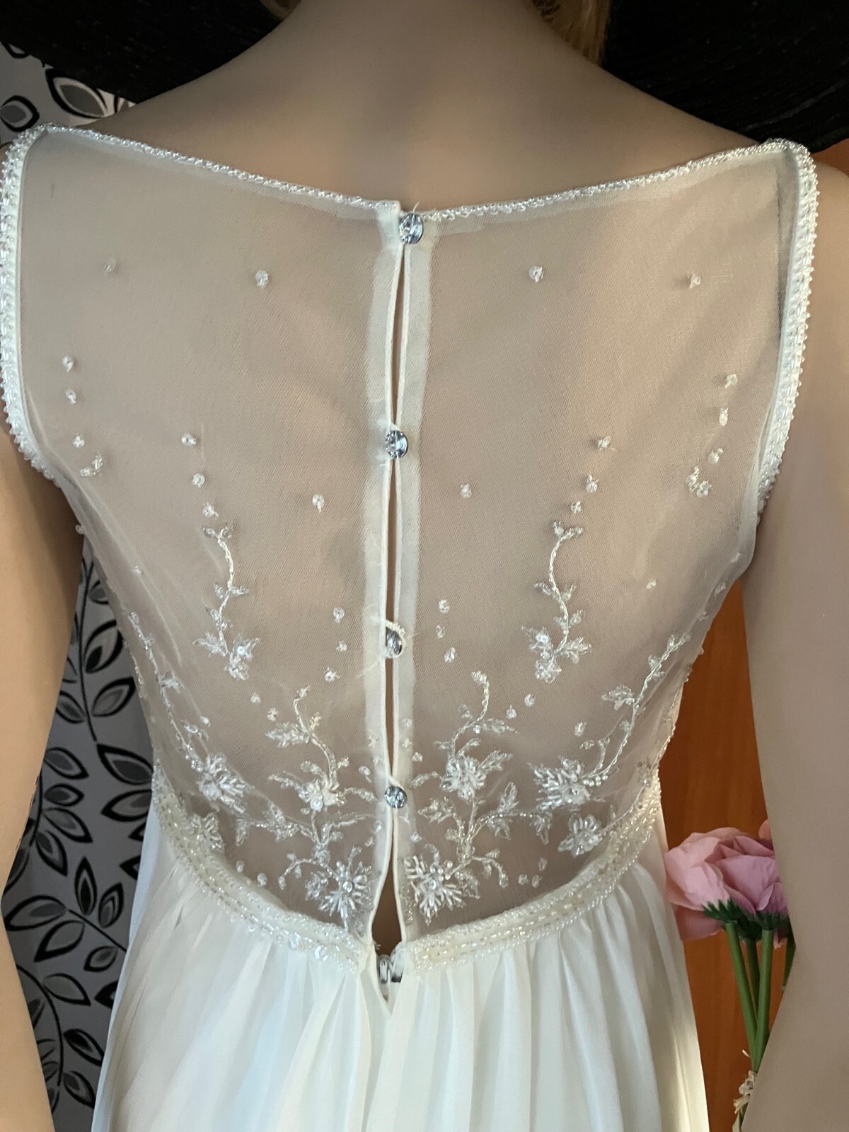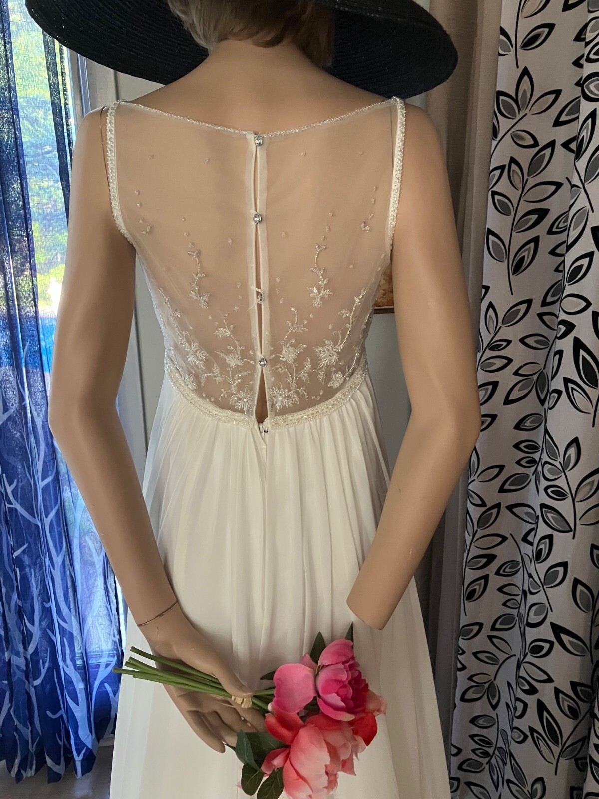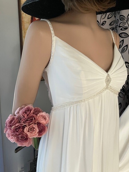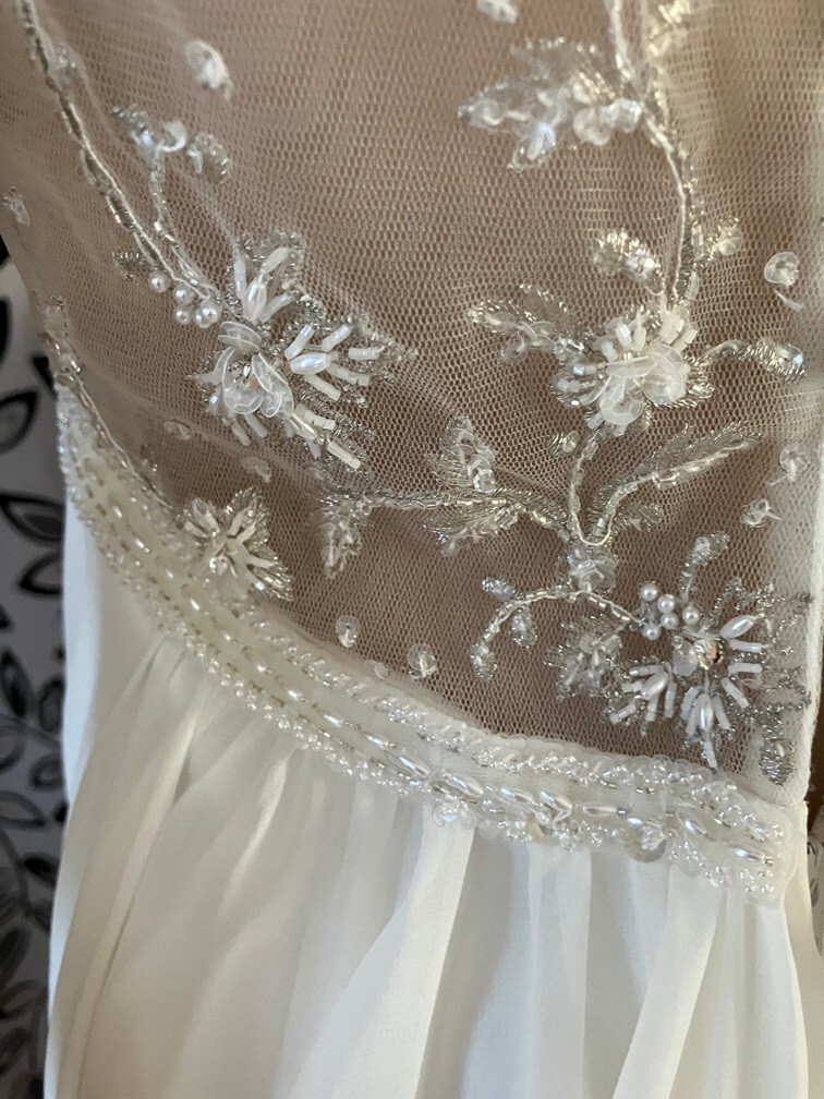 как выглядит GALINA 4 DAVIDS BRIDAL EMPIRE WAIST BEADED CHIFFON OVERLAY WEDDING DRESS GOWN 8 фото