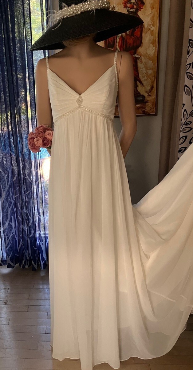GALINA 4 DAVID'S BRIDAL EMPIRE WAIST BEADED CHIFFON OVERLAY WEDDING DRESS GOWN 8