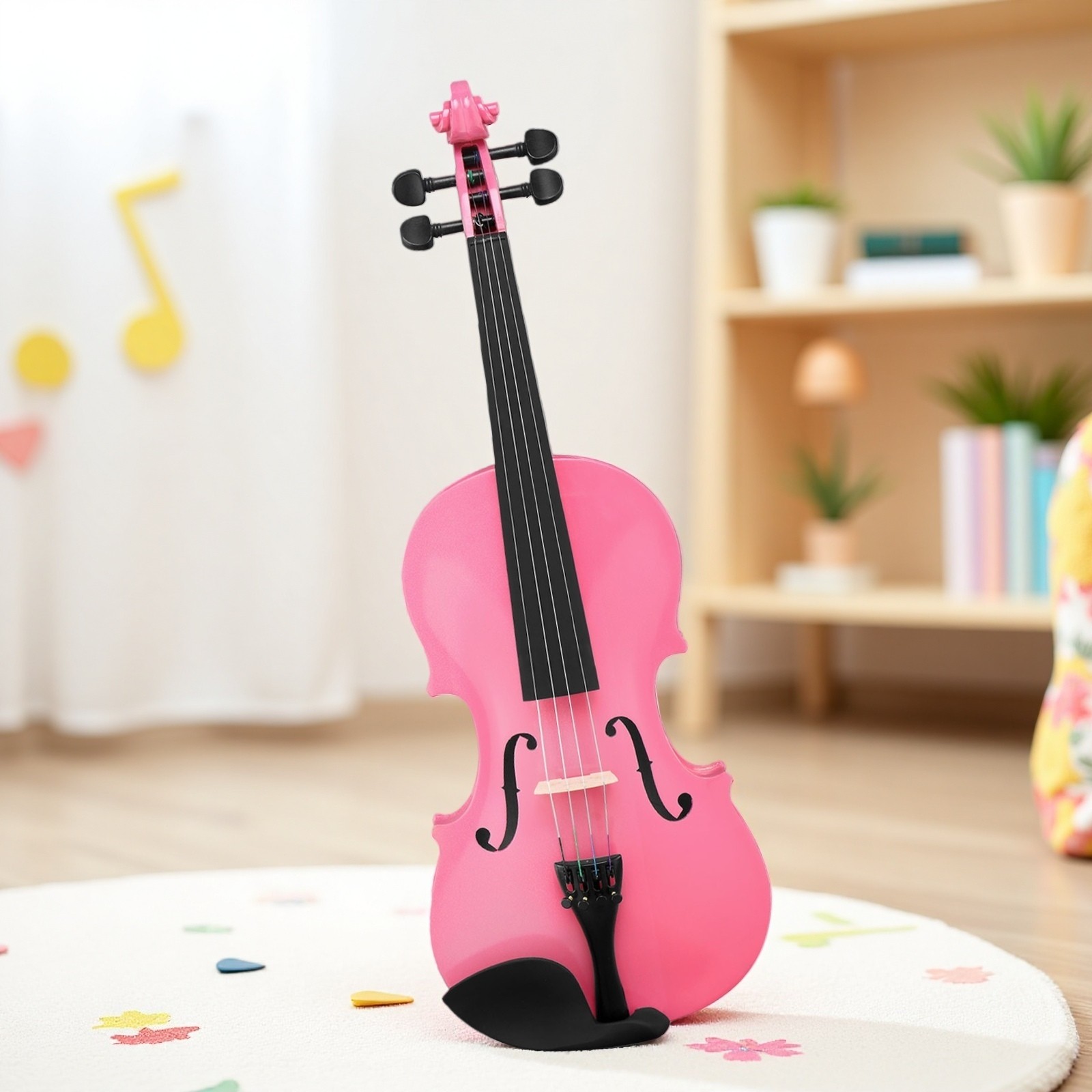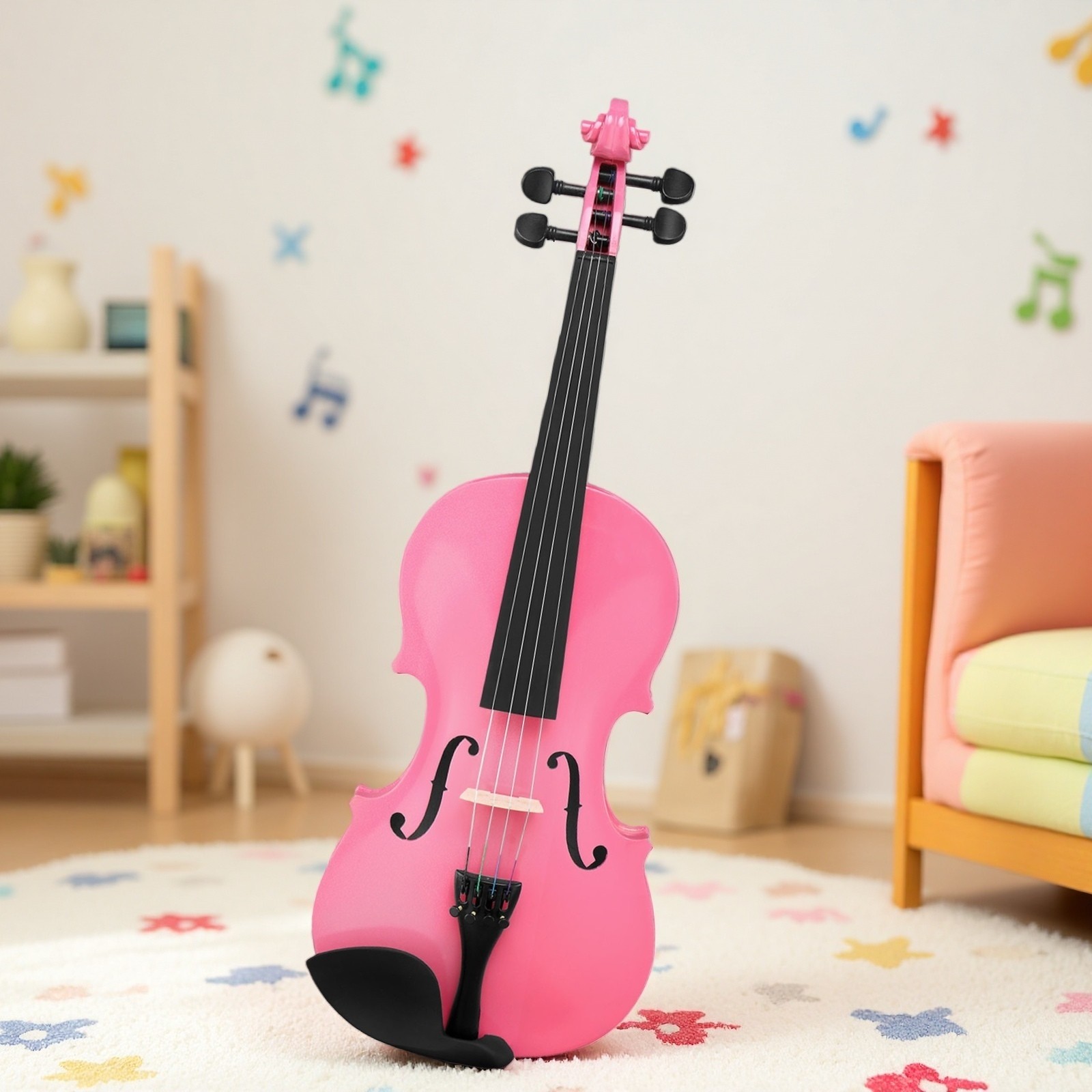 1/8 Size Kids Acoustic Beginner / Student Violin Set - Case, Rosin Bow, Pink