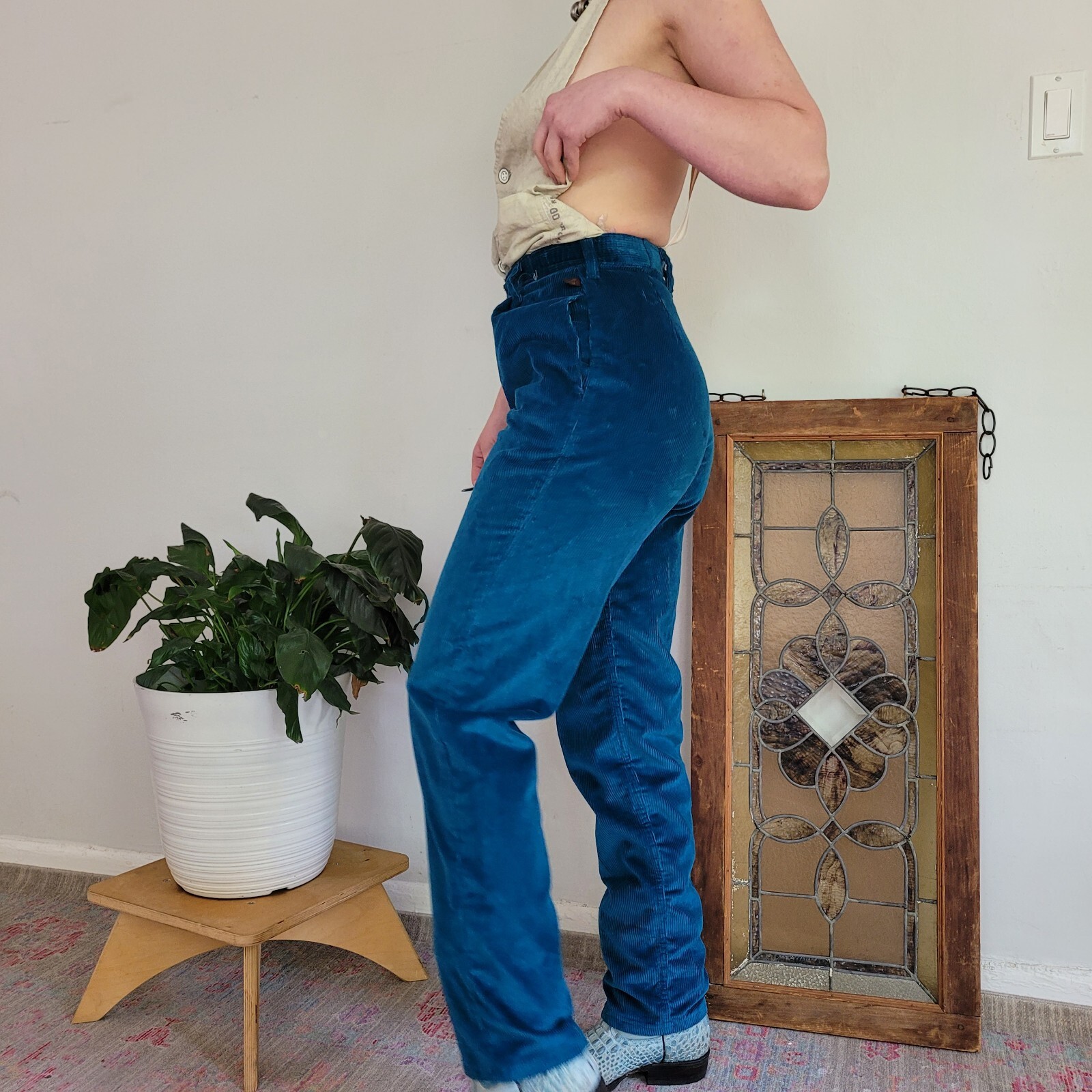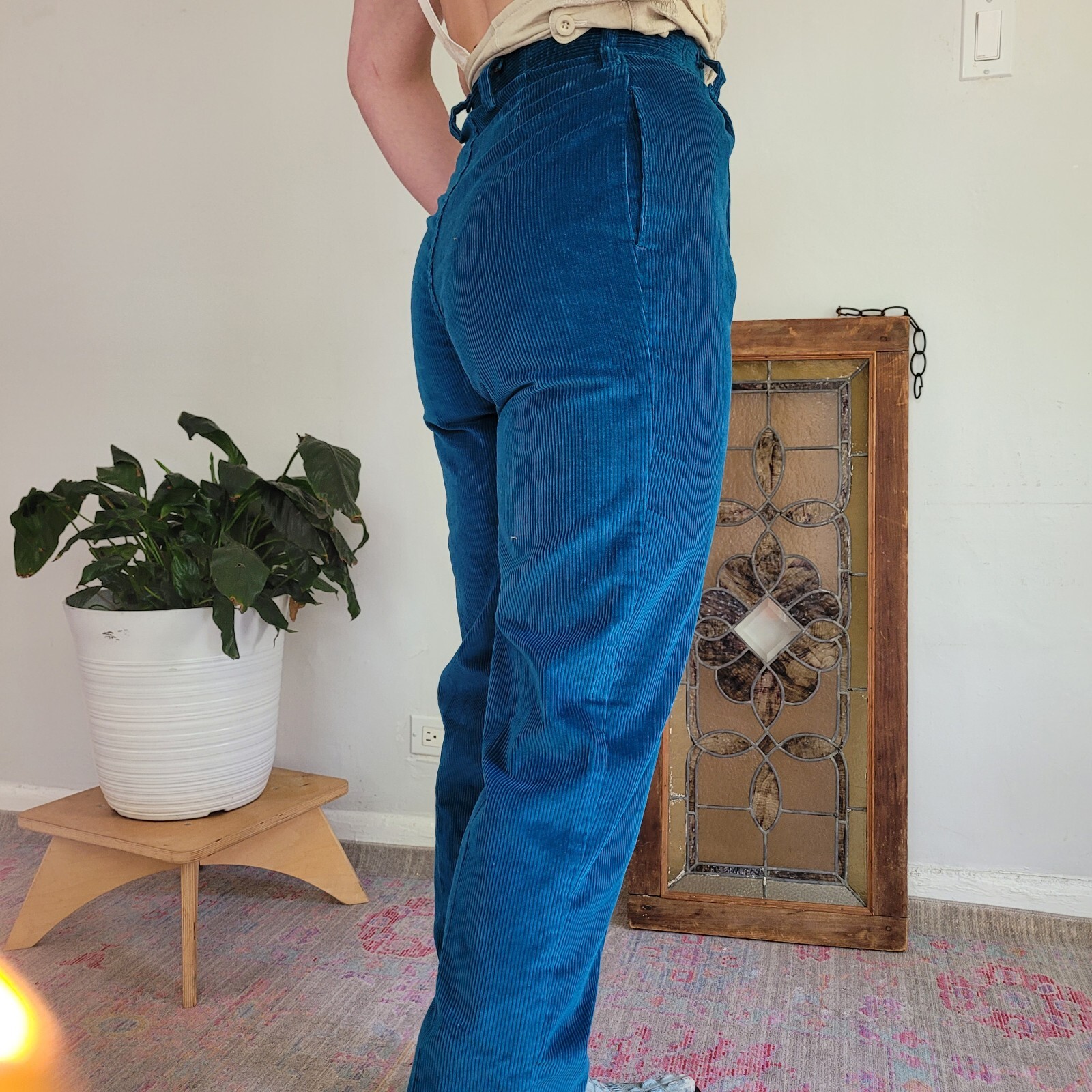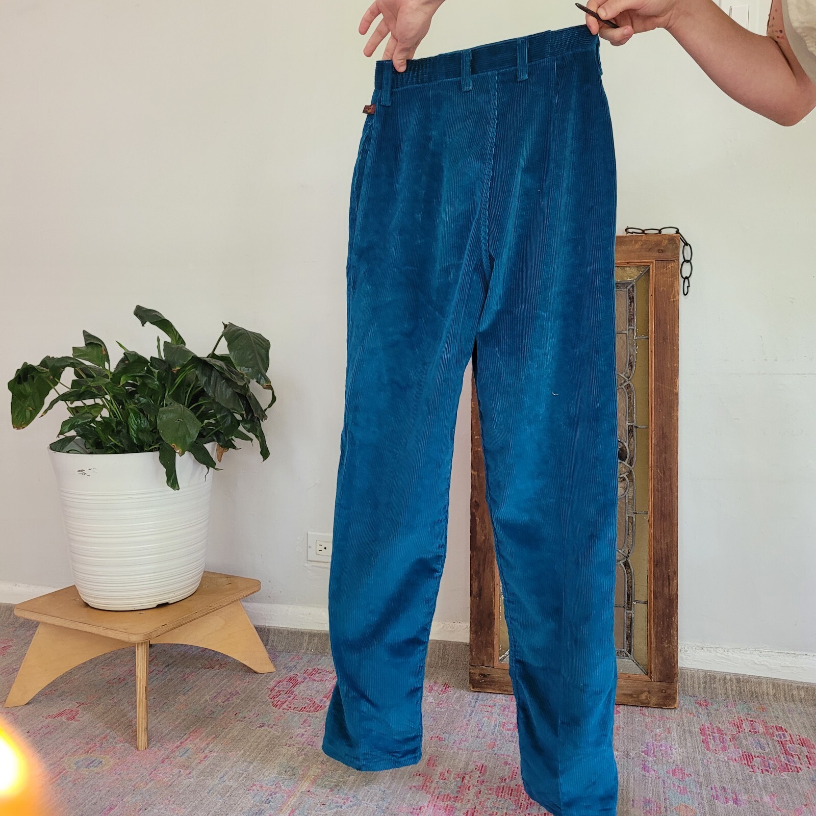 как выглядит Vintage 1960s Wrangler Bright Peacock Blue High Waisted Corduroy Pants Misses 8 фото