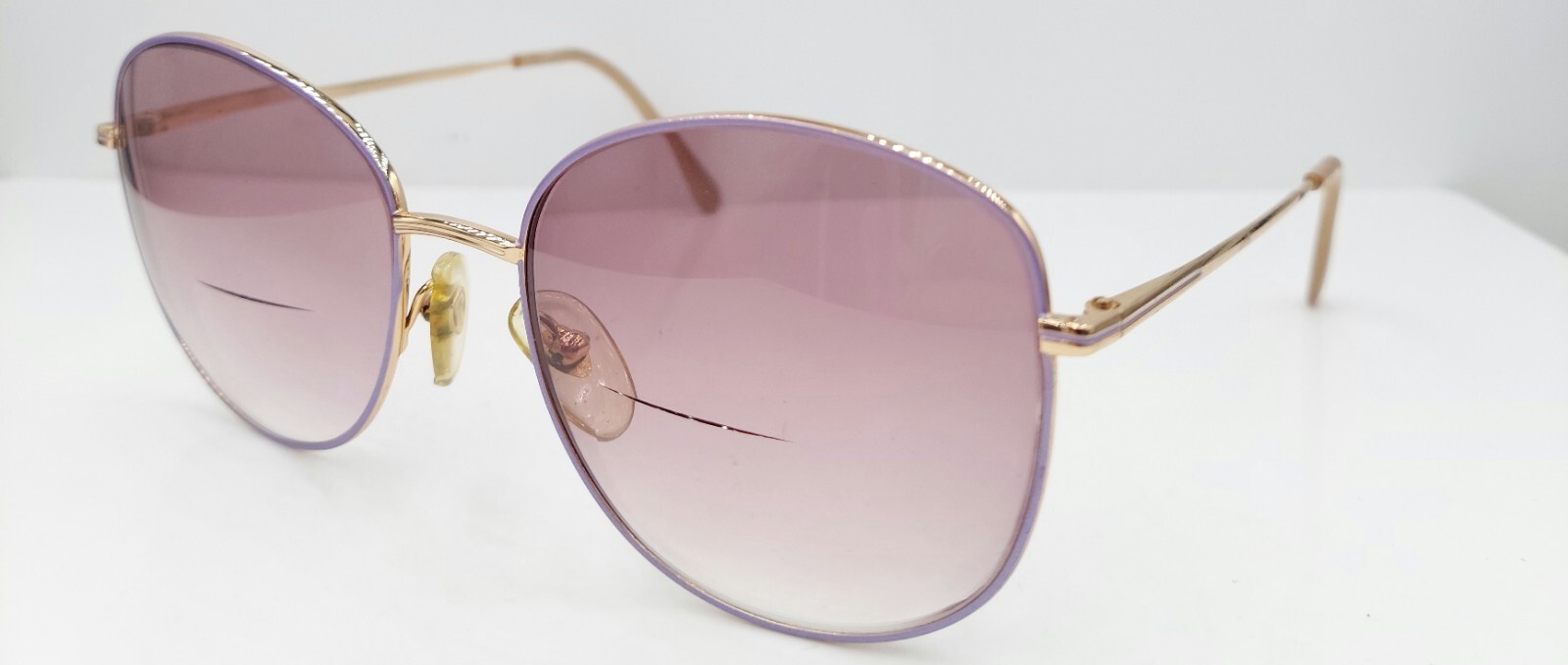 как выглядит Vintage LAMY L692 Gold Purple Oval Metal Sunglasses FRAMES ONLY фото