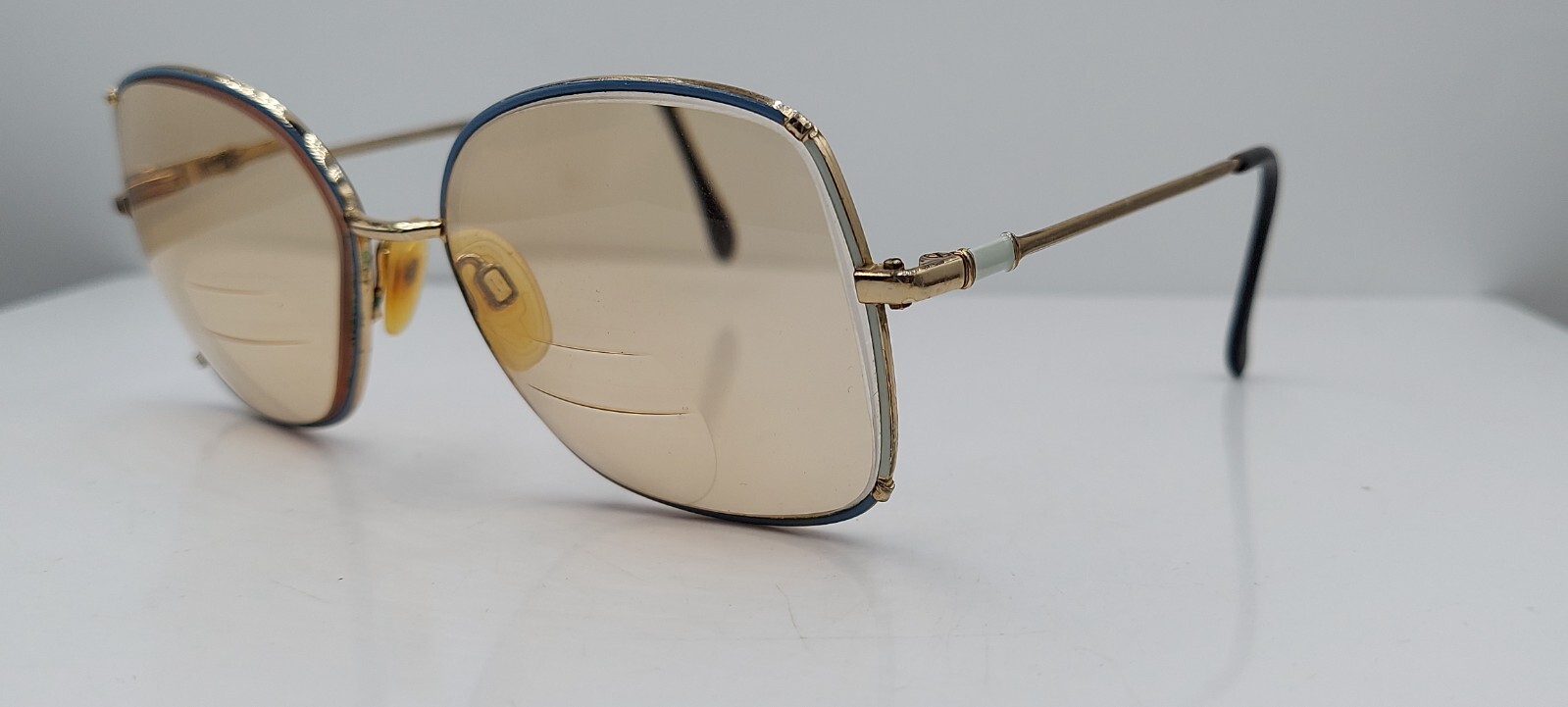 как выглядит Vintage Luxottica Felicia Gold Blue Oval Metal Sunglasses Italy FRAMES ONLY фото