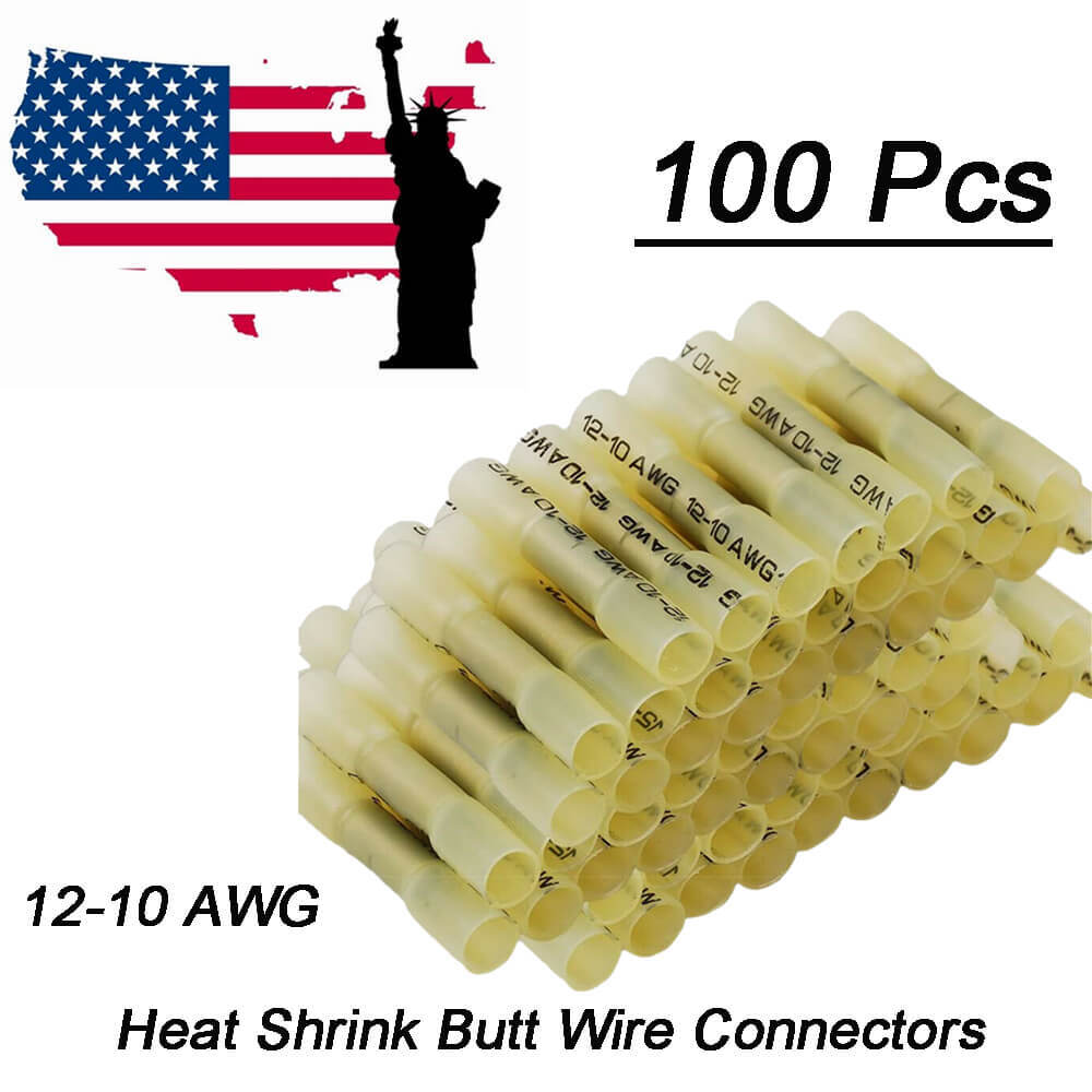 100X AWG 12-10 Gauge Heat Shrink Crimp Terminals Wire Butt Connectors Yellow