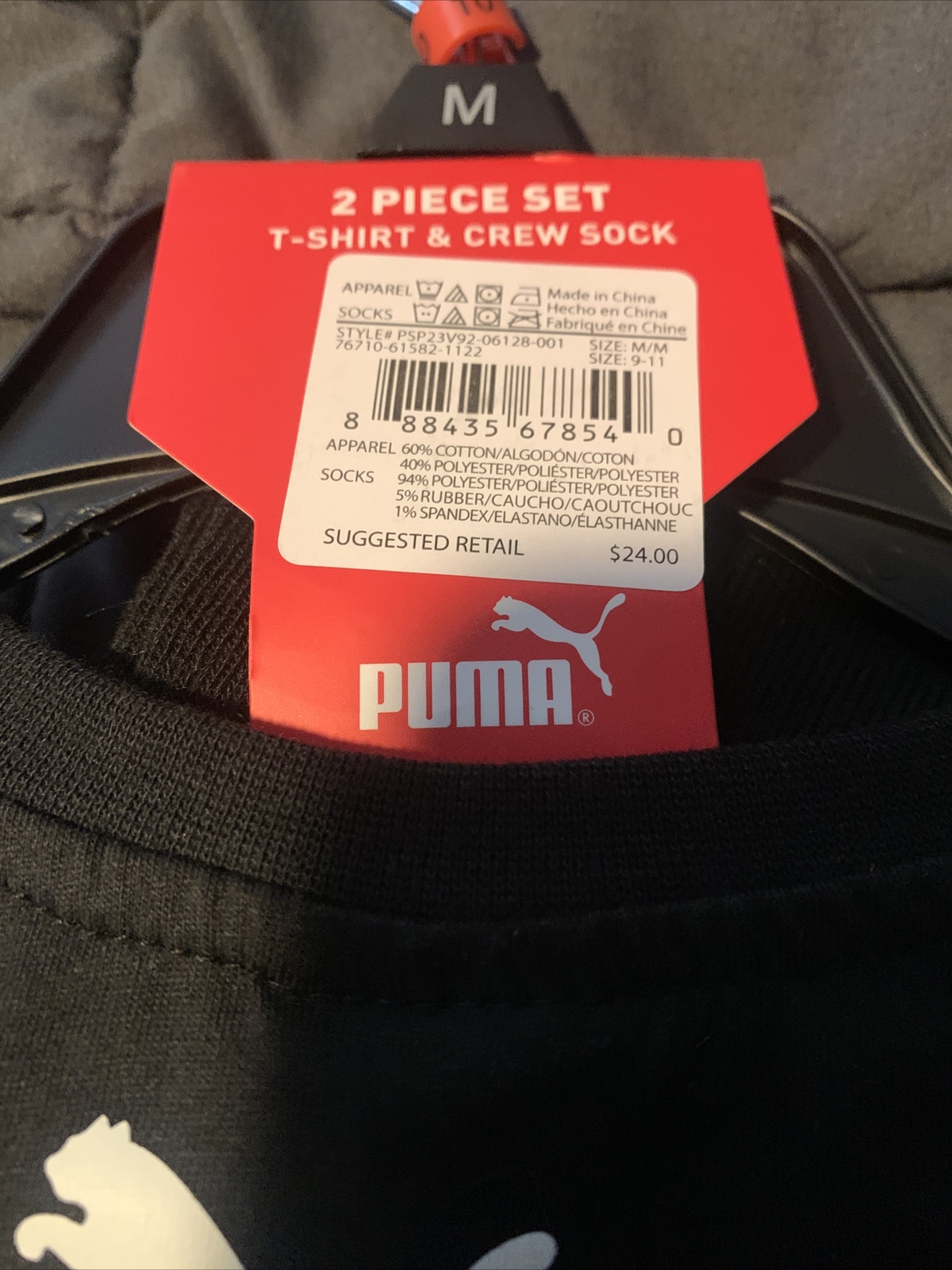 PUMA Boys' Graphic T-Shirt Crew Sock Set - Black - Size Medium