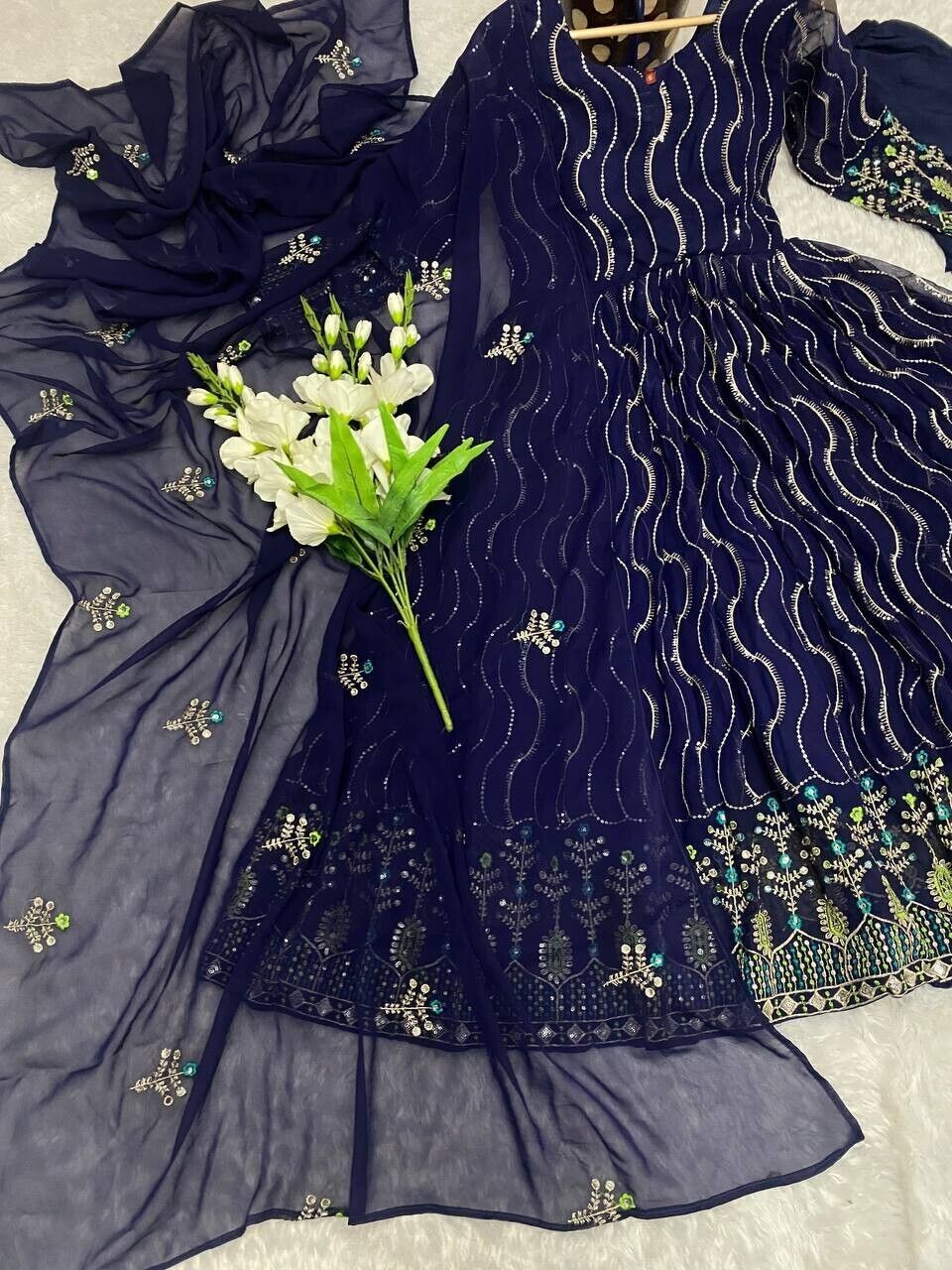 как выглядит HEAVY FAUX GEORGETTE LONG GOWN BOTTOM WITH DUPATTA FOR PARTY RECEPTION WEAR фото