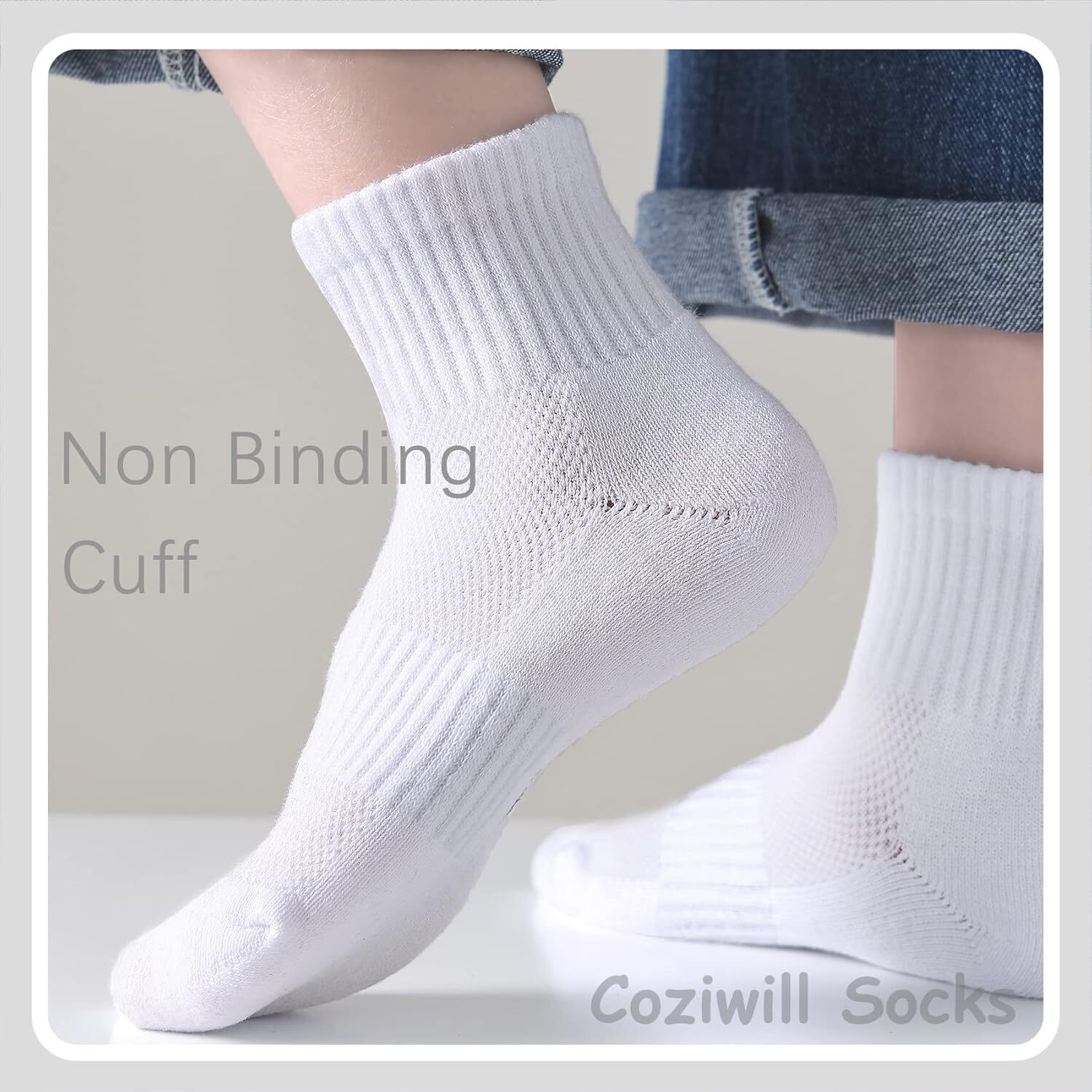 Kids Ankle Socks Boys Cushioned Athletic Crew Large, 10 Pairs White