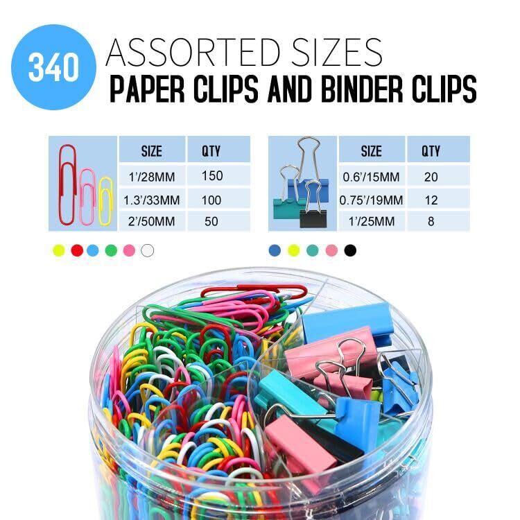 Paper Clips Binder Clips, 340PCS Paper Clips and Binder Clips Assorted MiX-340