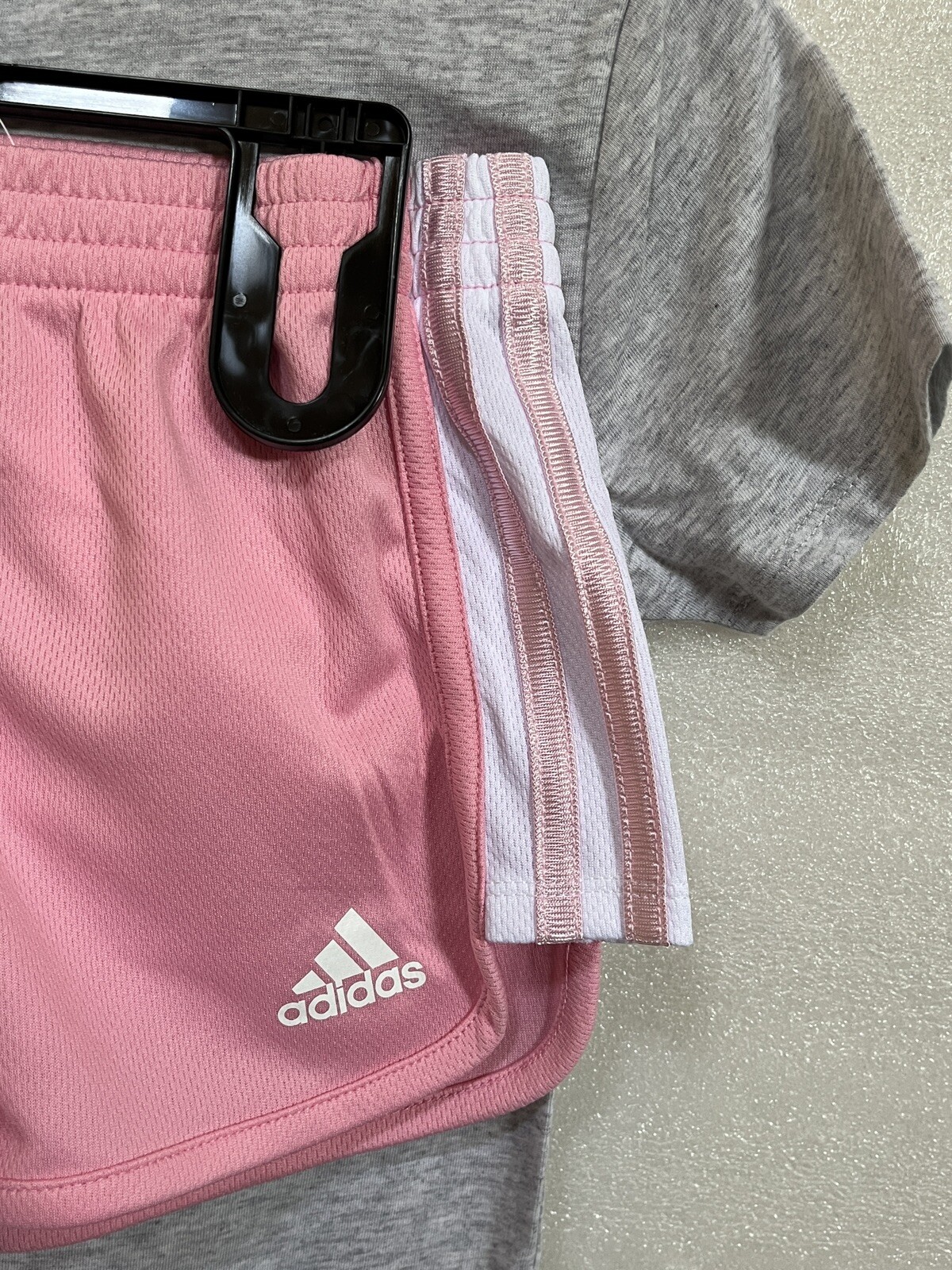 Adidas Kids 3 Piece Set Logo Tee Shirts And Shorts White Grey Pink Sz 6 New