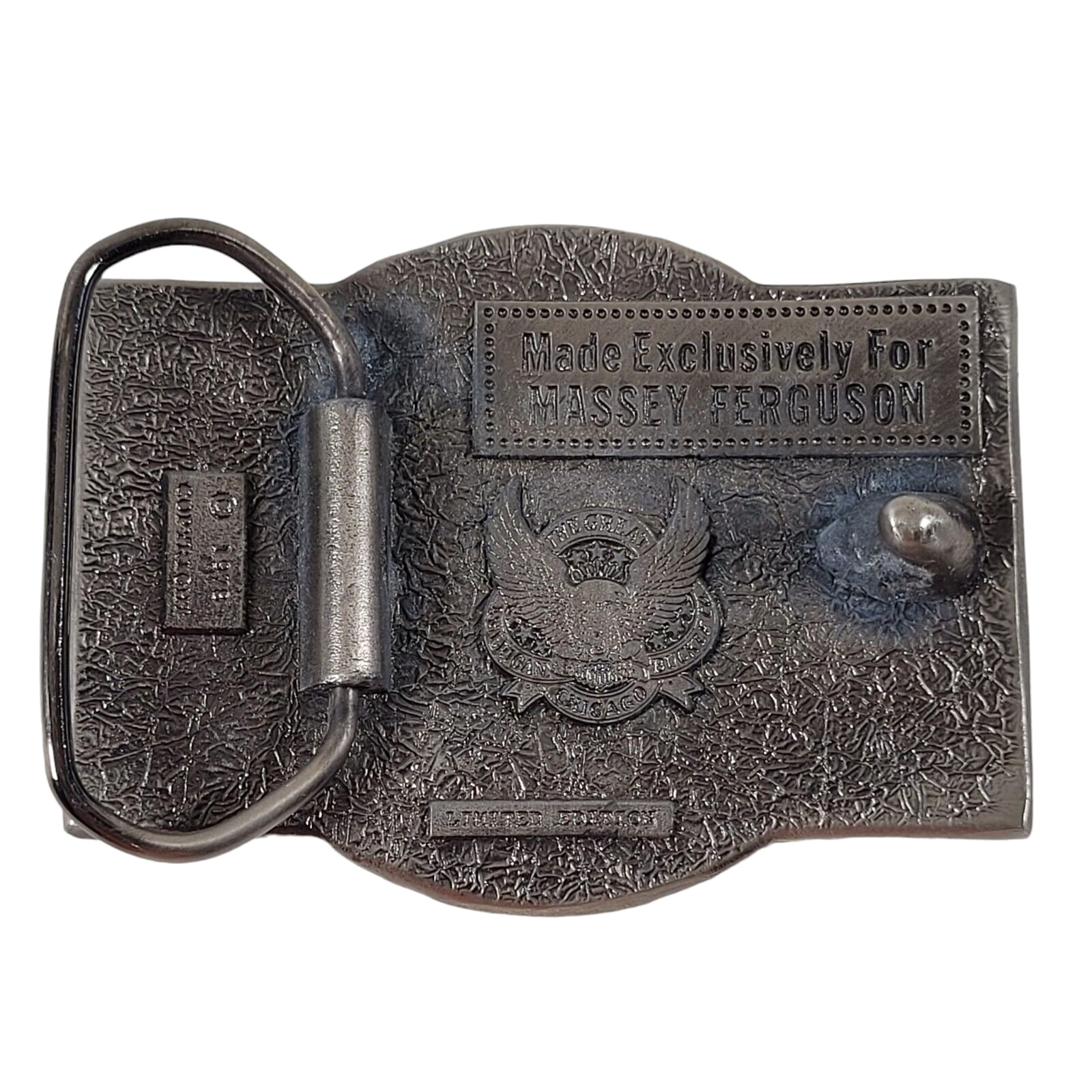 MF Massey Ferguson Farm Equipment Vintage 1978 Silver Tone Belt Buckle