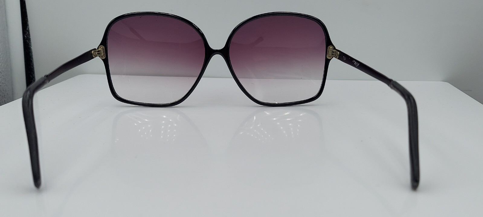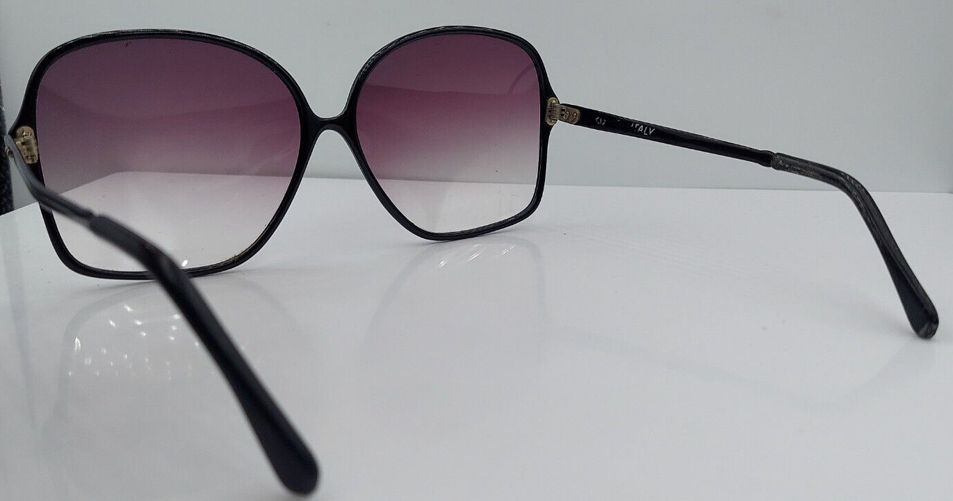 Vintage Black Oval Oversized Metal Sunglasses Italy FRAMES ONLY