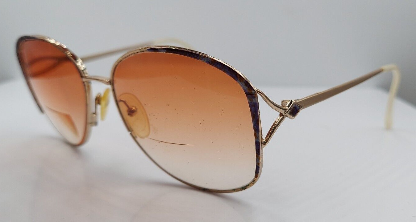 как выглядит Vintage WIndsor Saeila Gold Purple Oval Metal Sunglasses Italy FRAMES ONLY фото